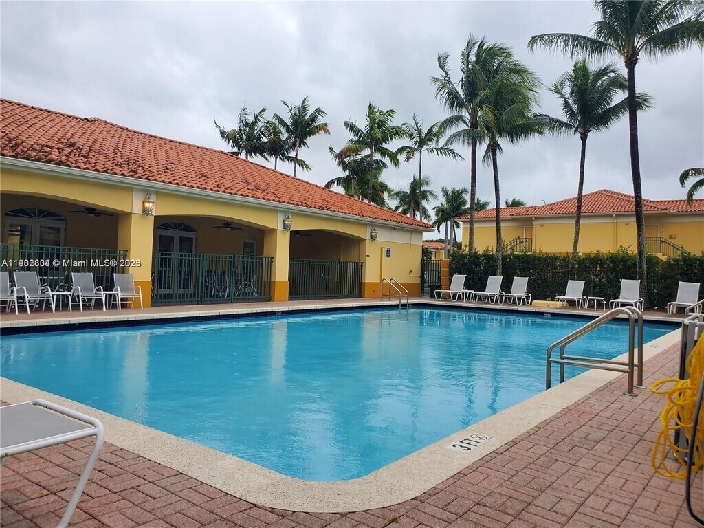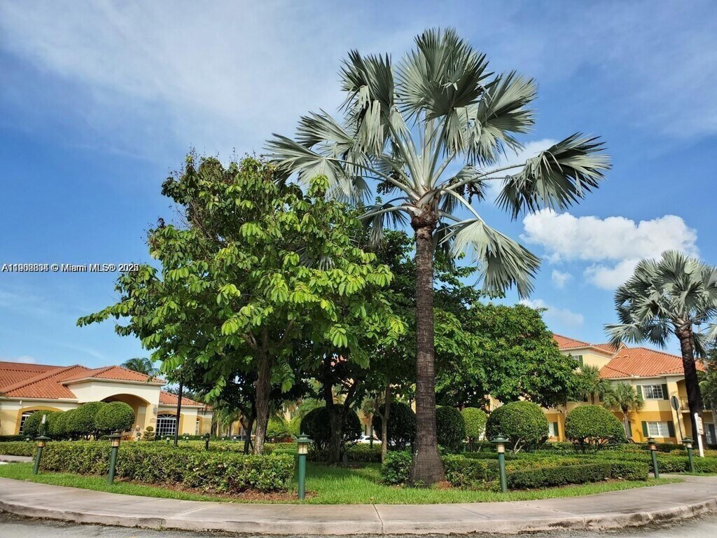 Spacious 1st floor 3 bed 2 bath apartment in the gated community of Palm Gardens. Tile floors, nice size kitchen with SS appliances, one balcony in living room and another one in the master bedroom. Washer and dryer inside the unit. 2 assigned parking spaces plus guest. Pool and fitness center.