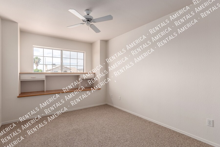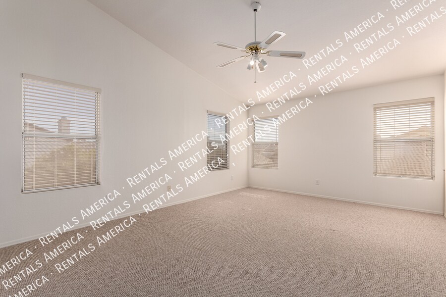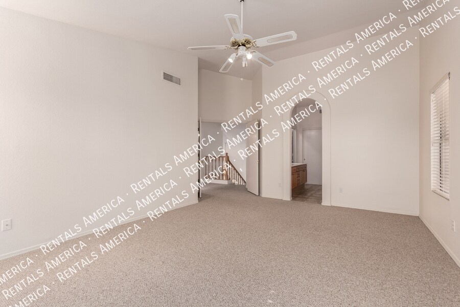 Fantastic home in Falcon Hill community. No HOA, great location near Loop 202, off McKellips Rd in Mesa. 4 bed, 3 bath, 2 story home and landscaped back yard! Freshly painted interiors, ceiling fans, and neutral colors throughout. Tile flooring, bathroom and nice sized guest bedroom downstairs. Carpet upstairs, all additional spacious bedrooms upstairs. Primary room with ensuite, nice storage in closet with built in safe. Several bay windows, natural light, separate dining or bonus area, and fireplace in great room off U-shaped kitchen with island bar seating. Pets OK and a medium sized pet door installed leading out to covered patio and grassy backyard. Side yard offers possible dog run with separate gate. 3 car garage, with storage options. Max 4 vehicles, trailers and motorbikes count as one vehicle. Negotiable beforehand depending on circumstances. Flex lease length term, if inquired in advance. Walk to Falcon Hill park and close to schools, shopping, and food and grocery options. Don't wait, tour and apply now! One Time Admin Fee: $300, Pet Deposit: $300/pet (if applicable), Service Fee: 2%. $39/month Resident Benefits Package, Helping Heroes Discount Available! Carpet Cats Allowed Ceramic Tile Dogs Allowed Garage Pets Allowed Vaulted Ceilings