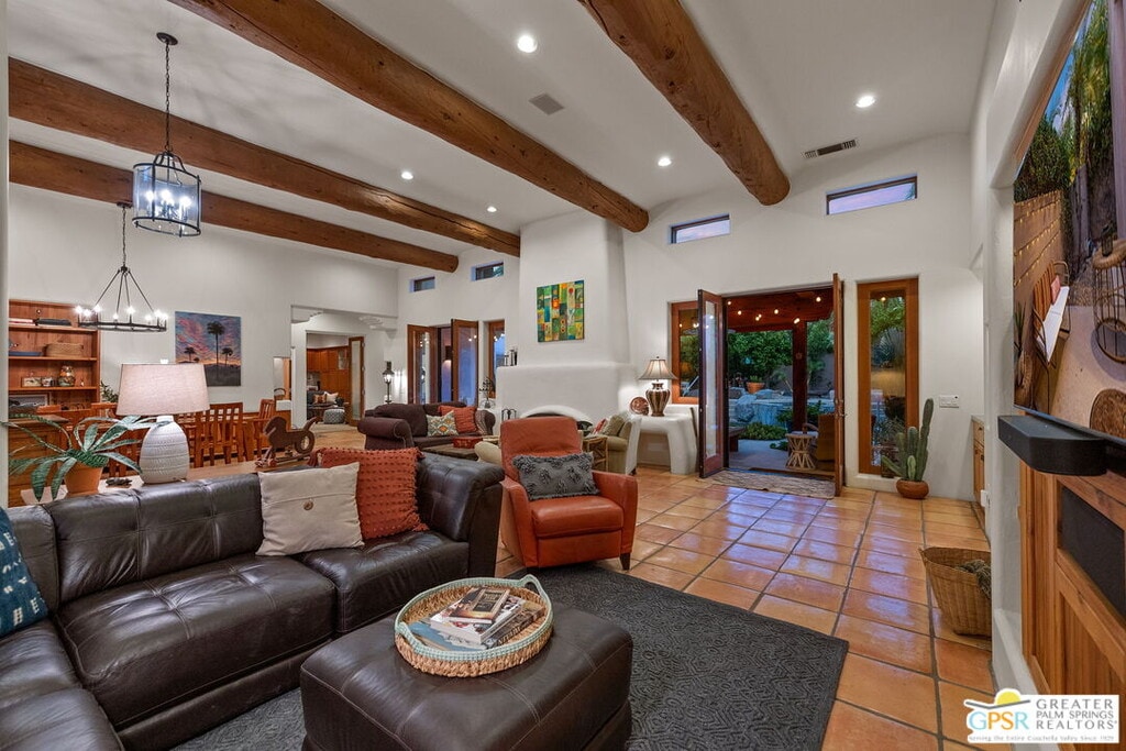*** Monthly Rates: 9,000 per month for November / $10,000 per month for December / $12,000 per month from January to April / $7,500 per month from May to October. Availability: Now through 1/31/2026, then again on 4/01/2026 through the rest of the 2026/2027 Season. *** Charming Southwestern Retreat in South Palm Desert - Perfect for entertaining! Discover your new home away from home at 72689 Beavertail St, an exquisite adobe-style retreat nestled in the heart of South Palm Desert. Just moments from the renowned El Paseo, this residence offers the perfect blend of character and convenience for those seeking a memorable seasonal escape. Step inside to be greeted by the warmth of Southwestern charm. The home features captivating log ceiling beams, a stunning statement fireplace, and vibrant saltillo tiles that infuse every room with a unique personality. With four bedrooms, including one thoughtfully designed as an office with a Murphy bed and sofa bed, there's plenty of space for everyone. Three of the bedrooms come equipped with Apple TV and Sonos sound systems, providing entertainment at your fingertips. The master suite is a true sanctuary, offering direct access to the tranquil backyard patio, a luxurious remodeled bath, and an oversized master walk-in closet. The terraced backyard is an entertainer's dream, boasting picturesque mountain views, a beach-entry pool, spa, and a cozy covered patio with an outdoor fireplace. Enjoy evenings around the sunken fire-pit, surrounded by lush, mature landscaping featuring citrus trees and dedicated cactus, rose, and rosemary gardens. For added fun and convenience, the home includes bikes for your use and a ping pong table. The garage, equipped with its own AC unit, ensures your comfort in all seasons. This home is equipped with modern amenities to ensure comfort and ease. You will love the proximity to El Paseo's shopping, dining, and cultural attractions, making this home an ideal base for exploring everything South Palm Desert has to offer. The beautiful yard and seamless indoor-outdoor living make this home a perfect retreat, especially at night when the ambiance transforms into a magical oasis. Come and experience the charm and comfort of this one-of-a-kind home your family's perfect seasonal retreat awaits! MLS# 24-422517