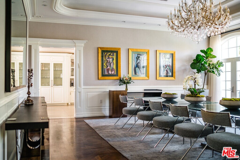 Situated in Beverly Hills flats and only minutes away from the iconic Rodeo Drive, this stunning six-bedroom, six-bathroom entertainers dream home is situated on over half an acre on one of the most coveted blocks in the exclusive tree-lined flats of Beverly Hills. Gated and ultra-private this sleek and sophisticated Architectural Mediterranean villa features a large eat-in gourmet chef's kitchen, expansive dining and living room, and a private outdoor lounge which opens to the tennis court, pavilion, pool, and spa and separates detached guesthouse. The grand master bedroom features a luxurious spa bath, shower, and an oversized walk-in closet. Property available immediately and furnished. For short term rental contact leasing agent. MLS# 25554079