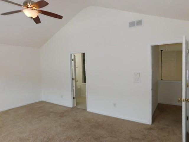 Lovely townhouse with covered entry. There is a foyer with wood flooring,separate dining room with bay window in the front,open 2-story family room with ceiling fan & fireplace,kitchen with white cabinets,Formica counters,panty,refrigerator,gas stove,dishwasher,microwave,disposal and breakfast area with access to the back patio. There is a half bath and laundry room with washer & dryer included,and access to the 2-car front entry garage with auto-opener. The upper level features two spare bedrooms,full hall bath with tub/shower combination. Large master bedroom with vaulted ceiling,ceiling fan and master bath with dual vanities,soaking tub,separate shower with enclosure,and walk-in closet. Terrific location close to downtown Alpharetta's shopping,dining & schools. HOA handles landscaping and trash collection. There are two storage closets in back (one on each side). Community with pool. Small pets negotiable - no aggressive dog breeds.