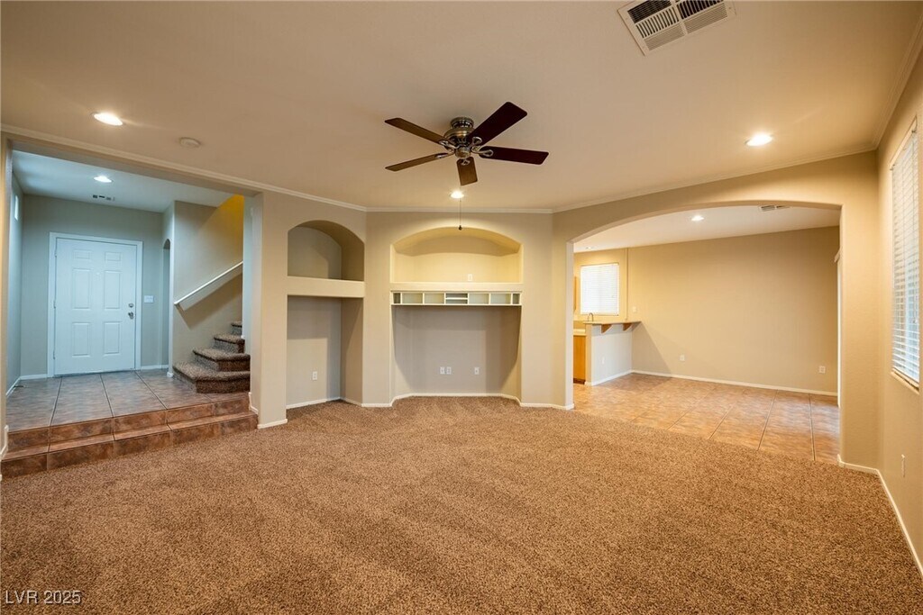 Spectacular 4-bedroom, 2-story home near Rhodes Ranch featuring warm two-tone paint, ceramic tile flooring downstairs, and carpet in the upstairs bedrooms. The kitchen offers Corian counters with plenty of cabinet space. The primary bedroom is spacious, with well-sized secondary bedrooms for added comfort. The backyard includes a covered patio with ceiling fans and landscaping. Conveniently located near shopping, restaurants, and more!