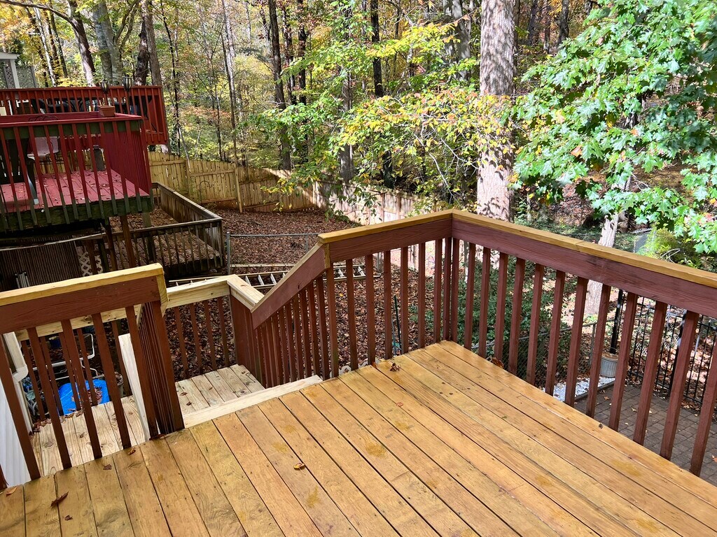 . 3 VERY LARGE bedrooms and 2 full baths, . We cut the grass . Daily and evening showings until 7:00 pm by appointment. . Accepting Tenants move-in any time Feb to April 2026. . Big Walk-in shower in 1st bath, shower/tub in 2nd bath . Shaded fenced-in deck and paved back-yard overlooking Mine Creek!! . EV charging capability at this home parking pad. . EV-level 2 for fast parking and no silly fees from Duke Power . Non-aggressive pets considered on case-by-case basis . Lower than normal HVAC cooling and heating costs Ask us why . Appliances including range, microwave, washer, dryer, ceiling fans, bar stools, kitchen table and chairs . Open spacious floor plan: (Living room, kitchen, bar, breakfast nook, 2-decks) . Deck overlooks "Mine Creek"...connects to popular "Raleigh Greenway" . Raleigh Greenway: paved, shaded, bike and e-bike-ready (2 blocks away) . Shaded 2-car private parking pad front of home, 3rd parking spot on street . Most HVAC vents in ceiling, which simplifies bed and furniture placement . Kitchen breakfast eat-in nook, kitchen/Living room bar, wood-burning fireplace . Several spots on all floors for home office and/or large flat-screen TVs. . Big laundry room: washer and dryer w/ clothes-hangers, big double-sink, storage shelves . Raleigh greenway entrance ~2 blocks away to paved and shaded greenway . Many options for internet including SPECTRUM, [[GOOGLE FIBER]] AT&T. Google fiber includes high-speed wireless for free and we like it!!! . GREAT schools...walk or bike to all of them. Walk to city & school-bus stops . Parks, tennis, and playgrounds and daycare are all 1 mile away . From property, you can go anywhere, without fighting traffic! . Easy commutes to Raleigh, Durham, RTP, Research Triangle Park, Cary, _Johnson County, Holly Springs, Wake Forest and other areas . Stay a while! No plans to sell this home for ~ 10 years!! but we always open to tenants buying home!!!