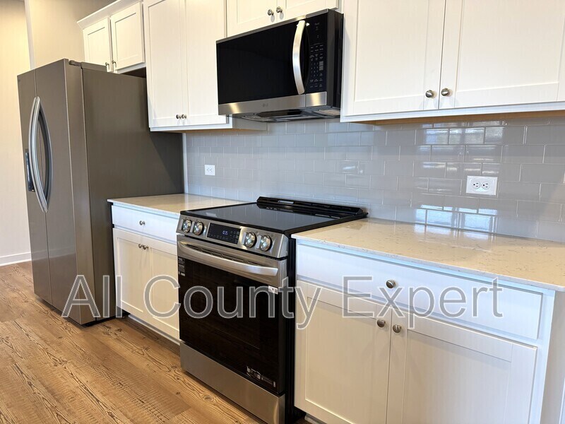 Welcome to this spacious and modern 3-bedroom, 2.5-bath home located in the desirable new Sherwood Square community in Flowery Branch. The open-concept main level features durable LVP flooring throughout the kitchen and living area, highlighted by a decorative electric fireplace that adds warmth and style to the living room. The kitchen is designed for both function and entertaining, offering a large center island and stainless-steel appliances, including a range, dishwasher, refrigerator and microwave. Bedrooms are comfortably carpeted, providing a cozy retreat. The primary suite boasts a private bath with dual vanities, a soaking tub, and a separate shower. Additional features include a two-car garage and ample storage throughout. Laundry room with washer and dryer. Enjoy resort-style neighborhood amenities, including a swimming pool, tennis courts, and playground. Conveniently located near shopping, dining, and major roadways.