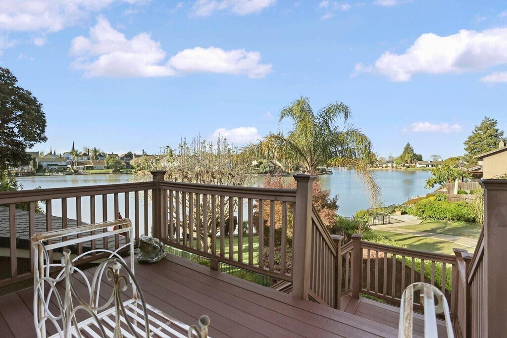 Discover the perfect lakeside rental in a peaceful Lincoln Unified School District. This beautiful home offers stunning lake views, modern updates, and a tranquil setting. Eco-friendly, powered by solar energy, it helps keep utility costs low. The open layout features spectacular lake vistas from the living and family rooms, each with direct outdoor access to enjoy the serene surroundings. The updated kitchen boasts sleek granite countertops, modern appliances, and a cozy dining area overlooking the water—ideal for tranquility and style. A spacious downstairs bedroom and a full, updated bathroom with a tub and shower provide comfort for guests or family. Upstairs are three sizable bedrooms, including a luxurious primary suite with an en-suite bathroom and a private balcony with direct stairs to the lake. The backyard offers breathtaking lake views, unforgettable sunsets, and a private dock for watercraft. This home combines comfort, modern style, and lakeside living!