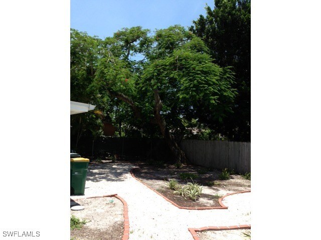 The Best of Naples Park. Remodeled and beautiful duplex. 2 Bedroom & 1 Bath. Approximately,850 sq. ft. of private living area plus about 400 sq ft. of common laundry and lanai area. Wood cabinets,glass tile mosaic inlays in shower,high-end brushed nickel fixtures,beamed ceilings,crown molding,granite counter tops,stainless steel appliances,built-in microwave,dishwasher,custom island with counter height seating,track and pendant lighting,remote controlled lights,fans and A/C,private garden,walkways,screen lanai,picnic area,fire-pit area,situated on large double lot with lots of room to roam. Non-smokers only. First,last and security will move you in. Please do trespass on the property or disturb the tenants without an appointment. Price for single occupancy. Double occupancy is $100 more per month.