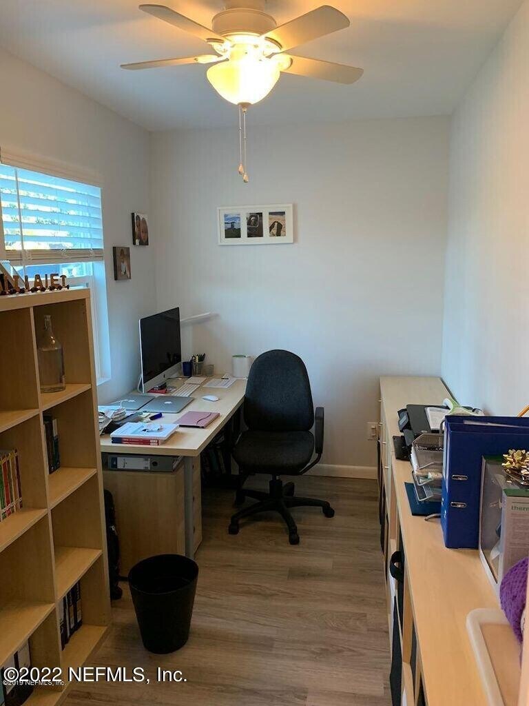 Completely renovated in 2019,this unique property is 7 blocks from the beach. This home has everything new as of 2019,including roof,AC,water heater,electricity,plumber,an extra room that could be an office/den/playroom,and garage. 2 bedrooms,2 full baths,plus a 160 sq. ft. building in the back that has it's own heating/air and full bath that can be used as another bedroom,office or storage. Vinyl floors throughout plus a kitchen which boasts stainless steel appliances and lots of storage. Large fenced lot includes lawn care,and large storage shed,. Large paved back porch and paved front which extends all of the way on the left to the back. 2 car garage with extra driveway parking and additional parking in the front. Walk or bike to local restaurants,attractions and the beach. MLS# 2142108