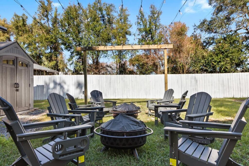 This property is also available for long-term renting. Fully furnished. Please inquire for additional information. Security deposit depends on length of stay Enjoy a relaxing retreat in the heart of Lakeland! This cozy 2-bedroom home is perfect for couples, solo travelers, or business guests, offering comfort, convenience, and easy access to all that Central Florida has to offer! Step into this charming home and feel right at home! Living Room: Modern couch & smart TV – perfect for relaxing after a day of exploring. Kitchen: Fully equipped with modern appliances for cooking delicious meals Bedrooms & Bathrooms: Master Bedroom: Queen-size bed with ample closet space Bedroom 2: 2 twin-sized beds for additional guests Bathroom: Walk-in shower (no tub) for easy and safe access Outdoor Space: Enjoy your morning coffee or evening unwind around the dedicated fire pit (4 chairs per pit) Shared outdoor area, respecting other tenants' space Laundry: Washer & dryer in the shed behind your unit Make this charming Lakeland home your home away from home and enjoy all that this vibrant city has to offer! - Driveway: Please do not block the driveway! We only have one way in and out. It has to be shared entry by both tenants. (You will be given a dedicated spot for parking in the back, on the concrete pad. Please do not park any where else on the driveway in as it will block other guests from getting in and out. No parking is allowed on the road. We are not responsible for any tickets given for doing so)