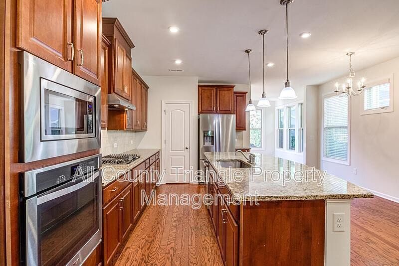 Executive 5 bedroom, 4 bathroom townhome in Cary with main bedroom and a guest bedroom with full bath on main floor! Three bedrooms and 2 additional full bathrooms are on 2nd floor. Best location with nice back and side yards! Upgraded features include wood flooring downstairs, an open kitchen with granite countertops and stainless appliances (including a gas cooktop), tile floors in all bathrooms, and a fenced backyard. A 2 car garage makes parking a breeze! Washer & dryer included for your convenience. Easy access to great schools, RTP, RDU, as well as I40, Highway 55 & 540. At this convenient Cary location, this one won't last long! Length of lease options include 12, 15, or 18 months. Subject to approval, pets considered w/ pet rent & additional deposit. No smoking. An application is required for all occupants age 18 and older with a $55 non-refundable fee required for each applicant. A credit, background, and eviction check as well as employment, income, and rental history verifications are completed on all applications. In addition to the application fee, a $5 monthly credit reporting fee is required for reporting of rental payments to credit bureaus. By submitting your information on this page you consent to being contacted by the Property Manager and RentEngine via SMS, phone, or email.