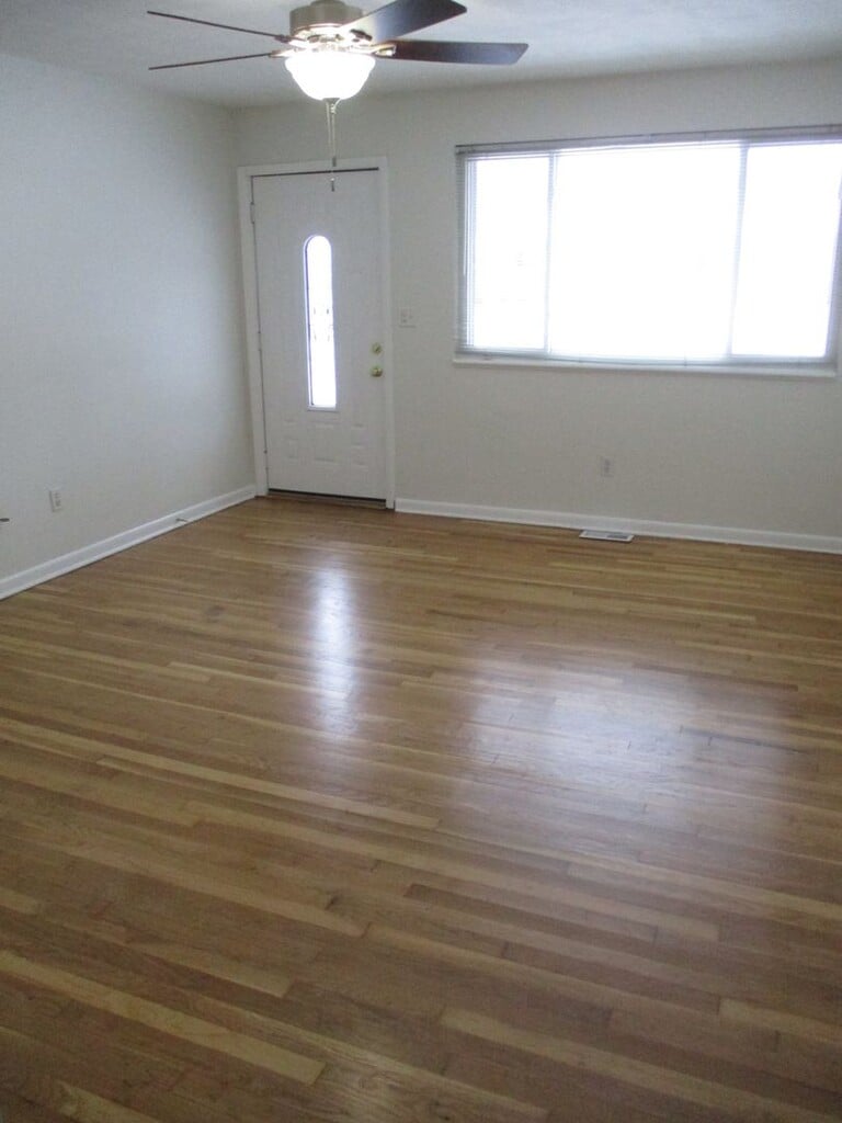 Minutes to Dayton Mall area, Restaurants, Shopping, Parks, Grocery, and Schools, this home offers a great location and space. The three bedroom, 1.5 bath has all hard wood floors (no carpet), a large deck, fenced in back yard, and a one car garage with extra storage. Tenant pays all utilities and pets allowed with fees.