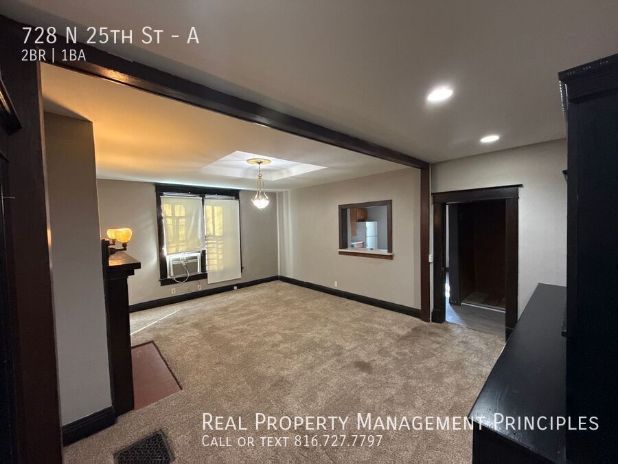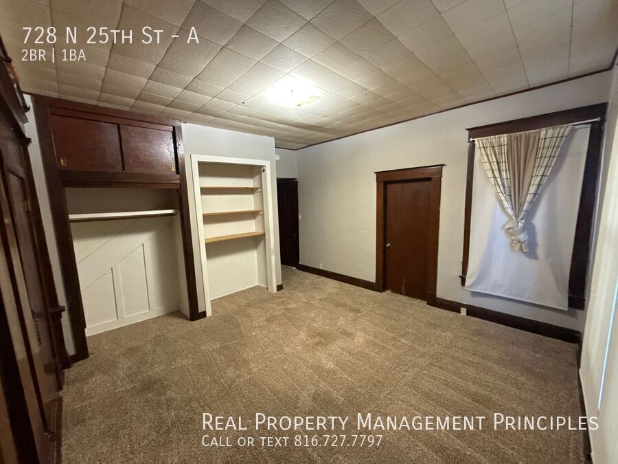 Discover this sprawling first-floor two-bedroom apartment in St. Joseph, MO. The unit features high ceilings and a very spacious layout with a large kitchen that provides ample room for meal prep and dining. Enjoy built-in bookcases that add character and storage, a newly remodeled bathroom, and the convenience of a two-car garage. Pet friendly, this apartment offers generous living space and practical amenities in a single-level setting. Water, trash, and sewer is $125 paid to property management each month. Gas is prorated and paid to property management each month. Available deposit free with Obligo! 2 Car Garage Built In Bookcases Gas Large Kitchen Newly Remodeled Bathroom Pet Friendly Sewer Trash Very Spacial Water