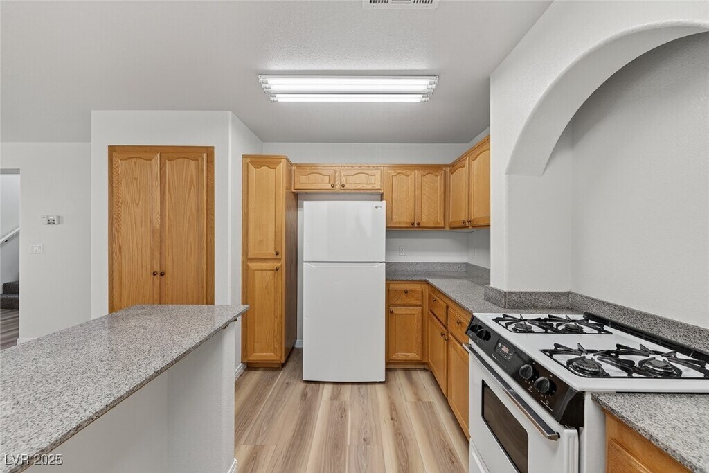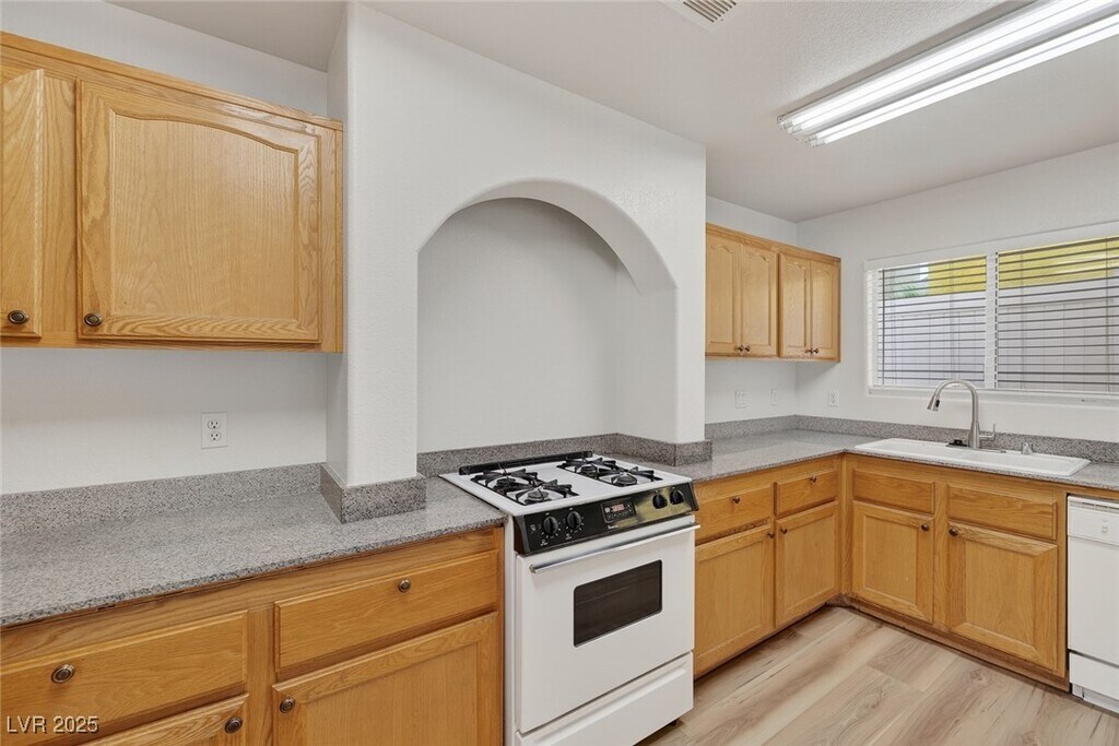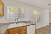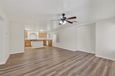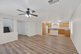 Great room style living with open floor plan with living, dining and kitchen all in view. Never miss out on what is going on. New Luxury Vinyl Plank wood flooring and new carpet. Fresh light 2 tone paint. Formal Entry leads into the large living room with ceiling fan, dining and kitchen. Kitchen overlooks all living area's with plenty of counter & cabinet space, island and granite counters. Generous size Primary Bedroom with ceiling fan/light, walk in closet and primary bath. Bedrooms are all nice size rooms each with ceiling fans with lights. Bedroom #2 with walk in closet and bedroom #3 with mirror closet doors. Neutral colors, blinds. Patio off back with EZ care pavers. Community pool, park and playground. Near shopping, 215, hospital. Ample living space. Nice fresh updated look, clean and ready for you to move in!