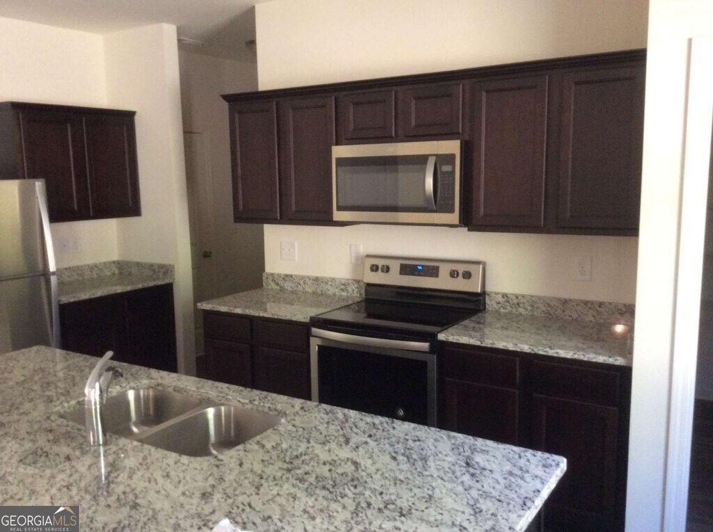 GAMLS supra lockbox on front door, Beautiful 4 Bedroom 2 Full Bathrooms 2 story Home. Very open floor plan with large kitchen over looking the living room. Granite counter-tops and tons of cabinets. Complete stainless steel appliances package. New Paint 2025. Beautiful wooded views...Must See! MLS ID 10679698