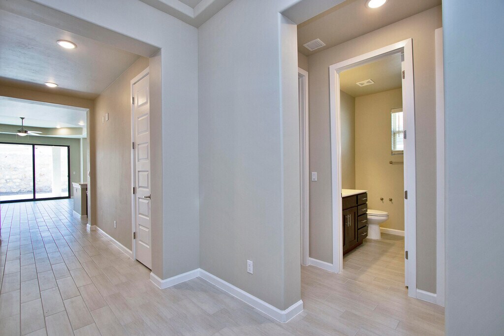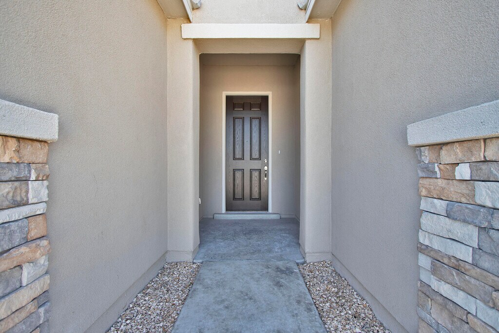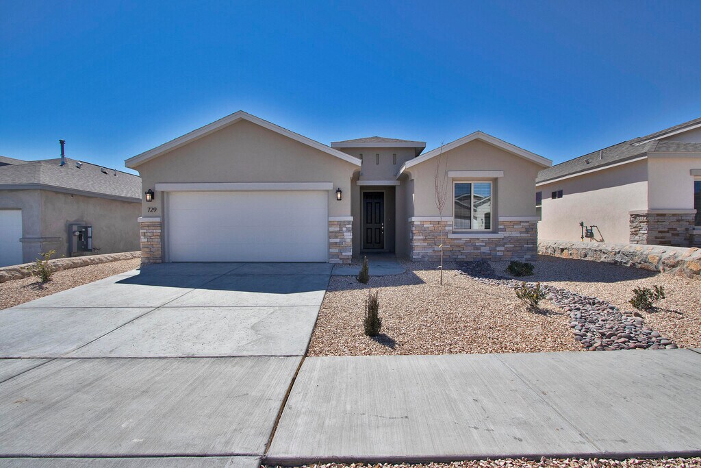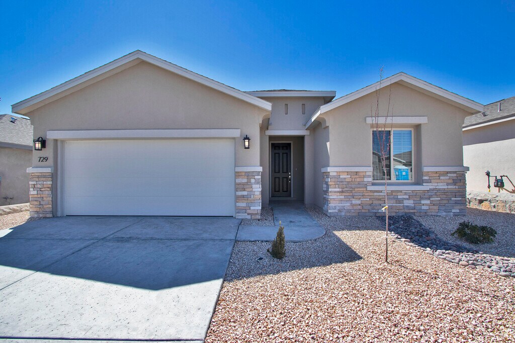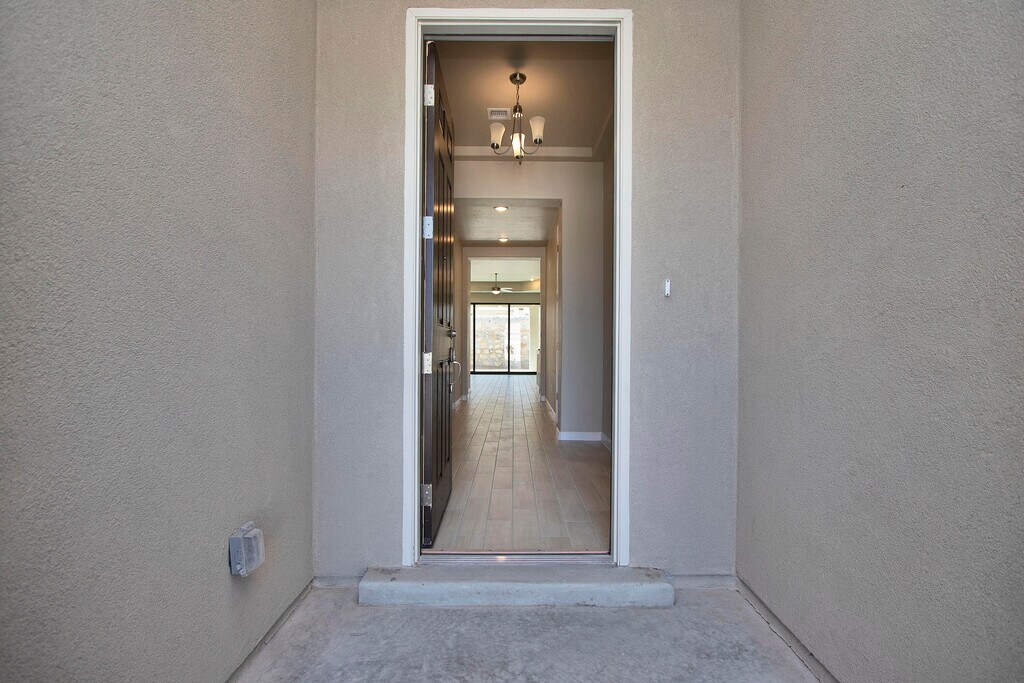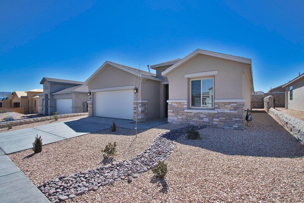 Quality construction at it's finest,located in Santa Teresa,NM!! 4 Bedrooms + 2.5 BATHS!! Home features: quartz countertops throughout,SS appliances including refrigerator,custom gourmet kitchen with farm sink and frosted glass pantry door. Custom fur downs in house,designer lighting/ plumbing fixtures,French style glass doors,tile throughout entire house,hand troweled walls/ ceilings with rounded corners. Elliptical arches and custom mirrors throughout,tons of natural lighting,salted concrete,landscaped to perfection front with drip system,large covered patio plus much,much more!!