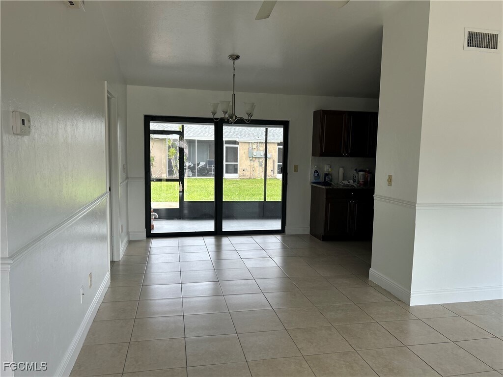 This is a very large very comfortable duplex unit right in the heart of Cape Coral. This unit is close to everything. Extra clean and updated for even the most scrupulous customer. Large corner lot and extra space in the back. Washer and dryer in unit and great lanai for relaxing and cooking out. Tile throughout and stainless steel appliances. Low security deposit. Any pets must be approved prior to moving in.