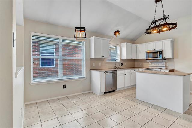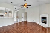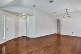 Beautiful 1 story 4 bedroom home! Beautiful drive up appeal includes stone façade and stone border around front beds. Large front room that can be used as formal living and dining or a large family room. Great for entertaining, the house also boasts an open kitchen flowing into 2nd living room. Kitchen has granite counter tops, an island & built-in desk. Master suite is connected to the fourth bedroom with french doors and would make a great nursery, sitting room or study. Additional updates are laminate wood flooring throughout living spaces, newer carpet in bedrooms, updated light fixtures & ceiling fans throughout, additional exterior lighting around garage. Covered oversized back porch also!