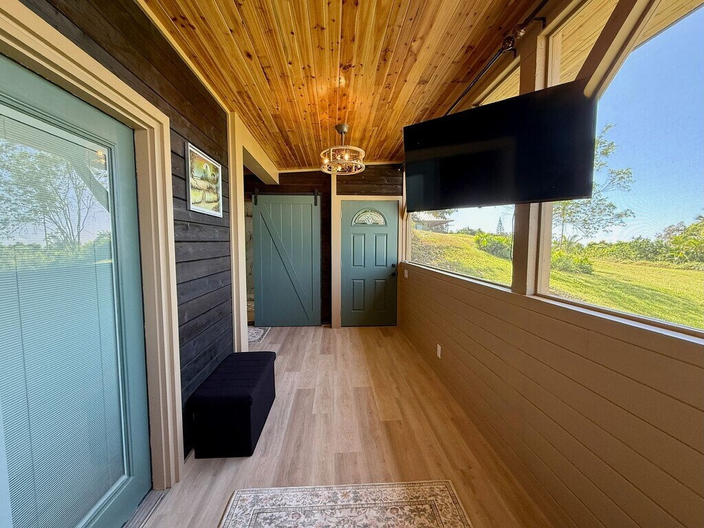 Elegant, Rustic and Modern Be the first to live in this beautifully crafted, newly built private cabin tucked into a lush, peaceful setting. Thoughtfully designed with warm wood ceilings, custom finishes, and abundant natural light, this one-bedroom retreat blends modern comfort with island charm. The full kitchen features quartz-style countertops, a farmhouse sink, gas range, and generous prep space. The open layout flows into a spacious bedroom with wood accent walls, ceiling fan, and oversized screened windows overlooking greenery. The bathroom feels spa-inspired with a glass walk-in shower, marble-style tile, modern vanity, and quality fixtures throughout. Located at about 1500 feet elevation, with a big yard and at a dead end street. The owners house is also on property located down a long driveway, so there is privacy. Rent: $2200/month + GE Tax, Gas & WiFi (Electric, Water & Rubbish Included) Security Deposit $2200 6 Month Lease No small dogs. Pet deposit for other animals. Renters Insurance Required For more information please CALL/TEXT Julie at or TENANT REQUIREMENTS: ~ Background/Credit checks will be conducted with $25 application fee ~ Minimum 620 credit score ~ Household income must be at least 2.5 times the monthly rent ~ Successfully pass a background/credit check. OFFERED BY LUVA Real Estate 75-240 Nani Kailua Dr. Ste #7 Kailua Kona, HI 96740 RB-21030