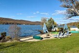 Available for Rent Immediately! Fully furnished, Stunning Lakefront Luxury! Discover the beauty of lakefront living in the gorgeous 3 bedroom, 2 1/2 bath home, where your own private sandy beach, oversized floating dock, and sweeping panoramic views of the lake and mountains create an unforgettable retreat. The main level features a spacious living room, kitchen & dining area, butler's pantry, laundry room & powder room. The second level features the primary bedroom suite with a dressing room & full bathroom, sliders to a balcony with stunning lake & mountain views & a generous loft offering two additional areas currently used as small bedroom areas. The lower level offers another bedroom and a full bath, large family room with walkout to the beautiful lake & beach area. If you're seeking a pristine lakefront sanctuary with modern comforts, this home delivers. Reach out today for a private tour. Tenant will have use of canoes & sailboat. No use of garage. Tenant responsible for lawn maint & snow removal. Required lease application, credit check, employment verif. Credit score 700+, 1st mth rent & 1 1/2 mth security deposit due at lease signing. NO SMOKING OR VAPING. NO PETS