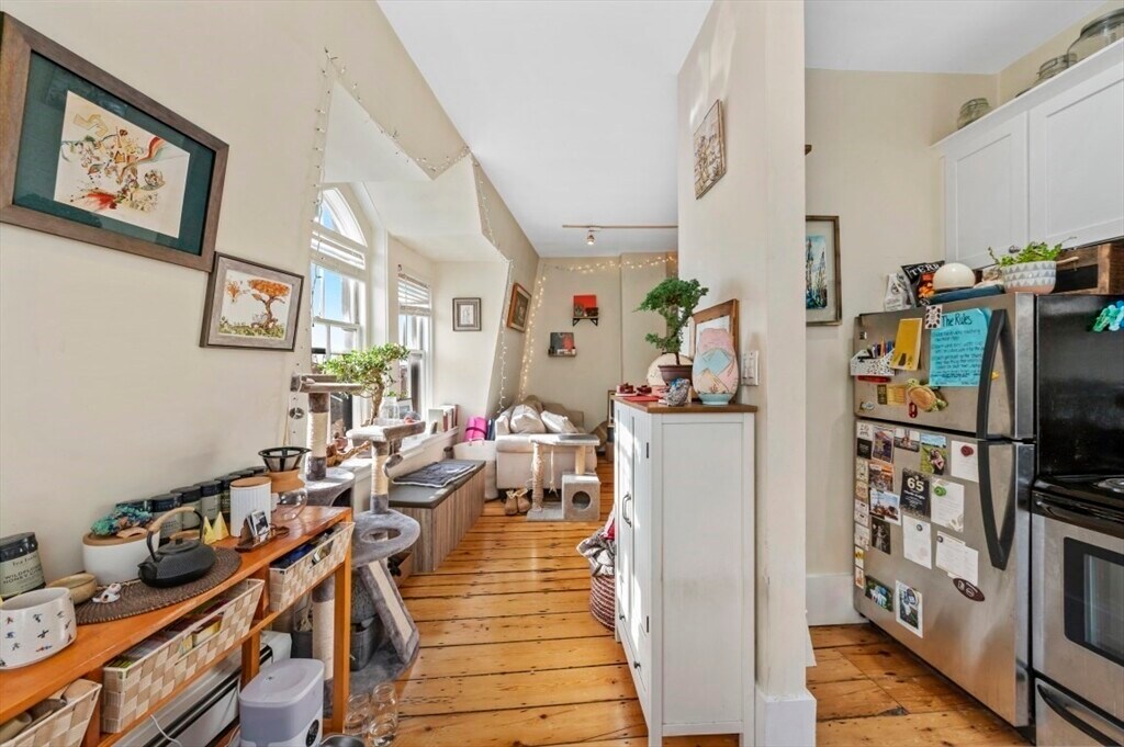 One-bedroom penthouse in the Gas Light District of Charlestown. This floor-through has original wide-pine floor and moldings as well as an updated kitchen and a modern bathroom. En-suite laundry,views,and tons of sun! The bedroom can accommodate a queen-sized bed and has good closet space. Enjoy views of the city from this unique perch and a great location on Main Street near the shops and restaurants of Charlestown. Located on the MBTA bus line,close to the Orange Line and Green Line,as well as 93,this is a great option for commuters. Pets considered no smoking. Avail now. First,sec,last. MLS# 73502501