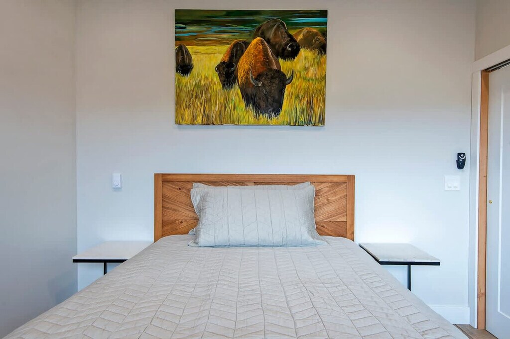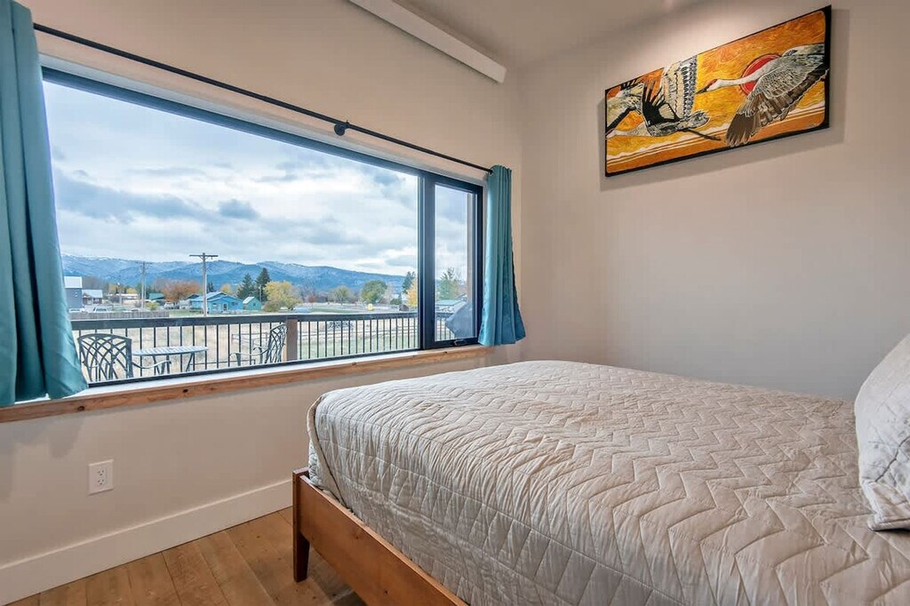 Welcome to The Gem Suite, a cozy and convenient retreat located in the heart of Teton Valley, offering breathtaking views of downtown Victor, Idaho. Feel at home as you explore the wonders of Yellowstone, Grand Teton, Jackson Hole, and Grand Targhee, all within easy reach. The apartment features an open floor plan with large windows that showcase stunning views of the town and surrounding mountain ranges. The well-equipped kitchen is perfect for preparing a feast or enjoying a cozy cup of coffee in the morning. A large balcony on the south side of the home is ideal for grilling dinner after a day of adventure. The Gem Suite is ideally situated across from the Victor Depot, providing easy access to the Teton Valley Bus Shuttle. This is especially convenient in winter for reaching Grand Targhee Resort without the hassle of winter driving. The shuttle also stops in Driggs, offering easy access to dining and grocery options. Distances to nearby attractions include Yellowstone's West Entrance (1 hr 45 min), Grand Teton (43 min), and Jackson Hole Mountain Resort (37 min). Most vacation homes in the area, including this one, do not have air conditioning. While it can get warm during midday in summer, temperatures cool significantly at night. We provide fans to circulate the cool breeze, and recommend opening windows and screen doors in the evenings. Please adhere to house rules: no events, smoking, or vaping are allowed, and quiet hours are from 9 pm to 8 am. Fines apply for violations, including a minimum $500 fine for smoking or vaping indoors, and failure to follow house rules or check-out procedures. [SI]