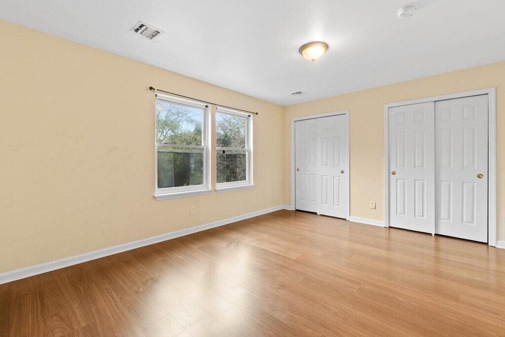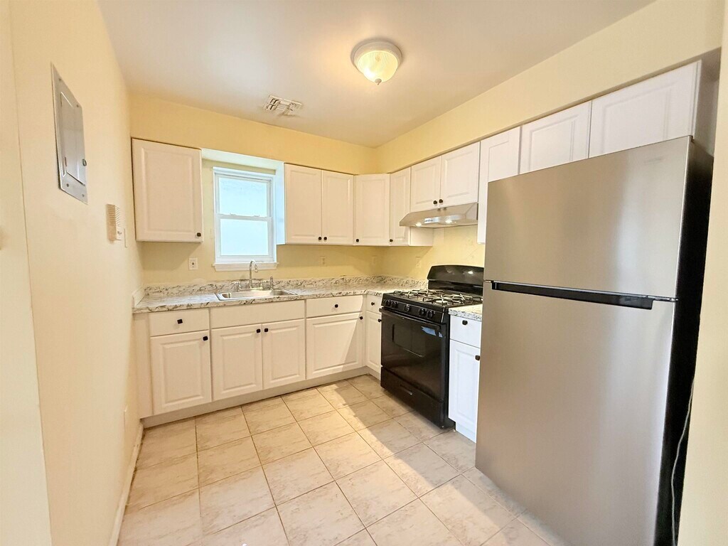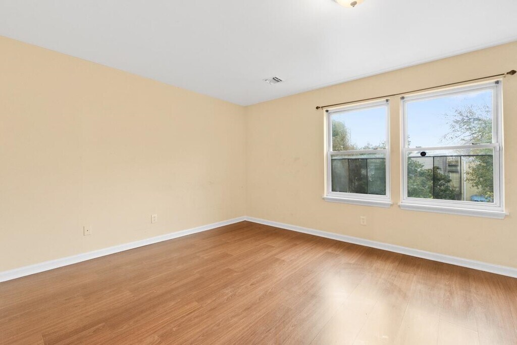 Spacious 3-bedroom, 2-bath unit with hardwood floors, central AC/heat, and great natural light. Features an updated kitchen with brand-new cabinets, stove, and stainless steel refrigerator. Enjoy a huge shared backyard, with 1 parking space included. Conveniently located near transportation, shops, and parks.
