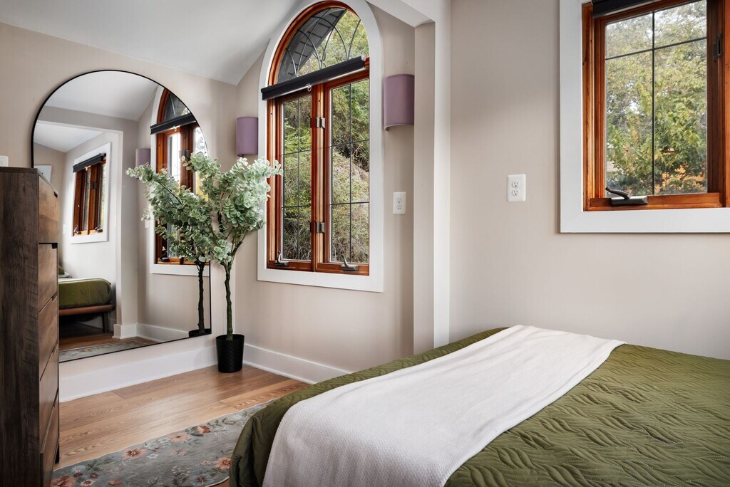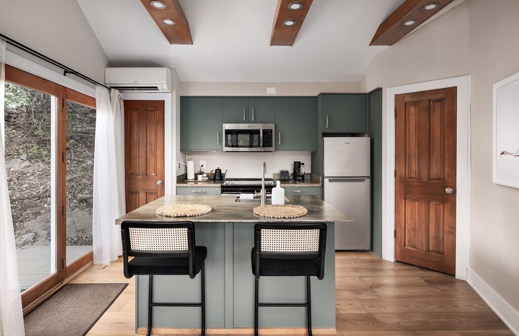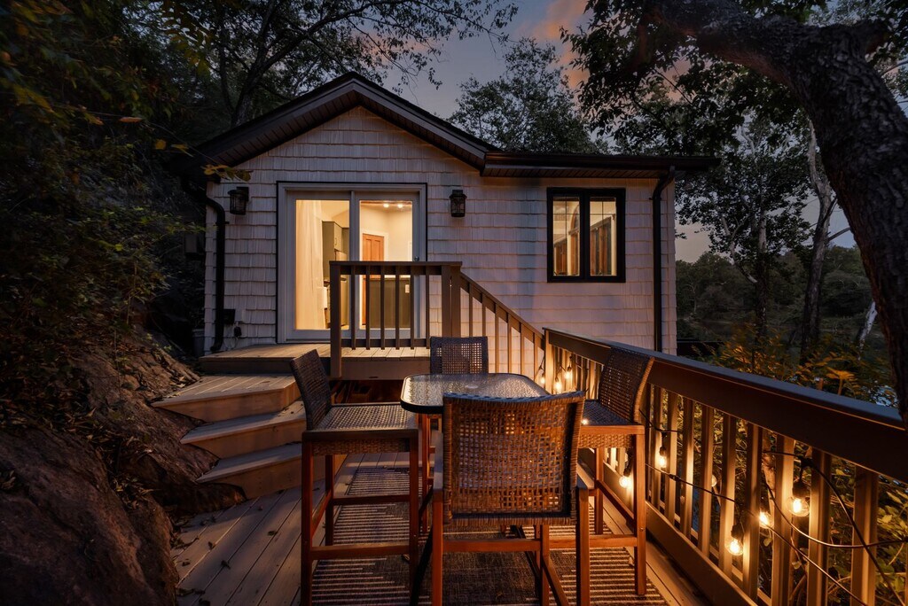 Charming riverfront retreat offering the perfect blend of comfort, character, and natural beauty. This updated 2-bedroom, 1-bath home sits right on the Shenandoah River with private water access and a peaceful setting ideal for weekend getaways or full-time living. Inside, you'll find an open-concept layout with vaulted ceilings, skylights, and a light-filled living space. The modern kitchen features a center island with bar seating, built-in banquette, and views of the river through large windows. Both bedrooms are thoughtfully designed for comfort and flexibility. Step outside to a spacious deck and covered patio — perfect for relaxing, entertaining, or taking in the tranquil river views. Follow the private path down to your own floating dock for kayaking, fishing, or simply enjoying the water. With recent updates, rustic charm, and unbeatable outdoor space, this home is a rare opportunity to own a slice of riverfront paradise just minutes from downtown Front Royal, Skyline Drive, and Shenandoah National Park.