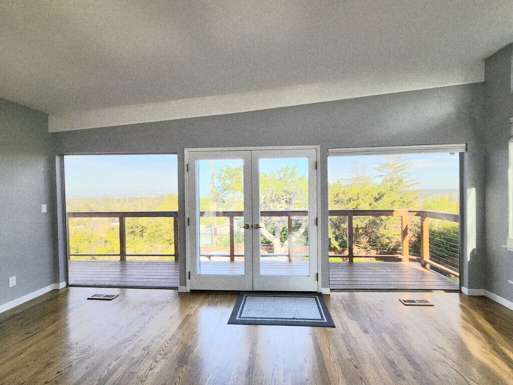 This beautiful home has 3 bedrooms, 2.5 bathrooms with a 2-car garage and spectacular views of the bay. Several outdoor decks on both sides of the house give this home a serene, private space in the hills for outdoor enjoyment. Inside the house is split level, large kitchen, master bedroom on the 2nd floor with grand windows. Wood flooring throughout lower level and upper level (carpet on stairs). No pets, no smoking, 1 year lease. Solar panels for reducing PG&E costs (with 2 tesla batteries), several fireplaces, central heating. Tenants pay all utilities directly. Owner pays for gardening services.