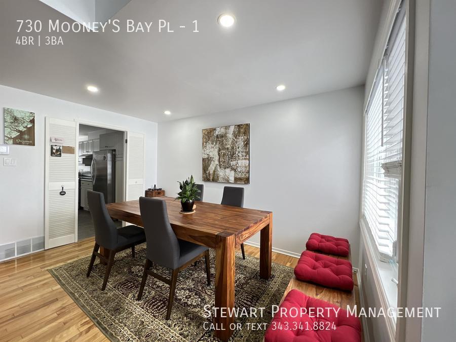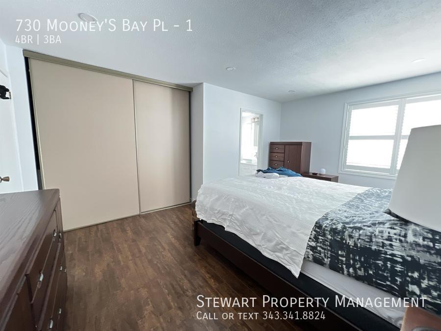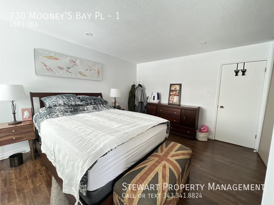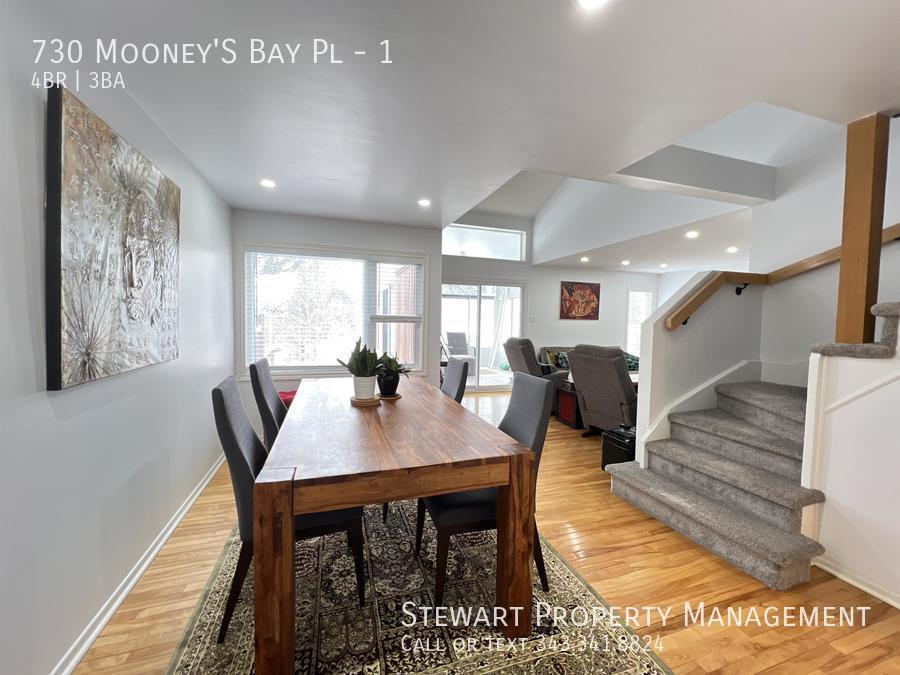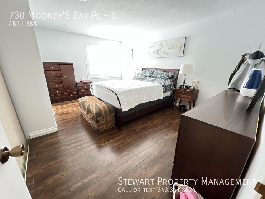 AVAILABLE DECEMBER 1st!! SPACIOUS 4-BEDROOM SINGLE-FAMILY HOME NEAR MOONEY'S BAY BEACH – 730 MOONEY'S BAY PLACE Welcome to **730 Mooney's Bay Place**, a beautiful and spacious single-family home offering comfort, style, and functionality in the heart of the **Riverside Park** neighbourhood — just minutes from **Mooney's Bay Beach**. Features: * 4 large bedrooms, including a primary suite with oversized closet and upgraded ensuite bathroom * 2 full bathrooms + 1 half bath * Open-concept galley kitchen with high-end stainless steel appliances * High ceilings with hardwood and luxury vinyl flooring throughout * Fully finished basement * Sunroom with access to backyard * Fenced-in backyard with deck and storage shed * In-unit laundry (laundry chute included) * Indoor garage parking + outdoor driveway space * Air conditioning and climate control * Utilities extra This recently renovated, well-maintained home is ideal for families, professionals, or mature students looking for a balance of modern living and comfort. The open-concept main floor provides an inviting space for entertaining, while the finished basement offers added flexibility for an office, recreation room, or guest area. Location: * Quiet residential area in **Riverside Park** * Steps from **Mooney's Bay Park & Beach**, trails, and schools * Close to shopping, restaurants, and public transit * Quick access to major roadways and downtown Ottawa Criteria: * Pets considered * Non-smoking unit/premises * One-year lease minimum * First and last month's rent required A wonderful place to call home — **professionally managed by Stewart Property Management**, providing attentive service and tenant care.