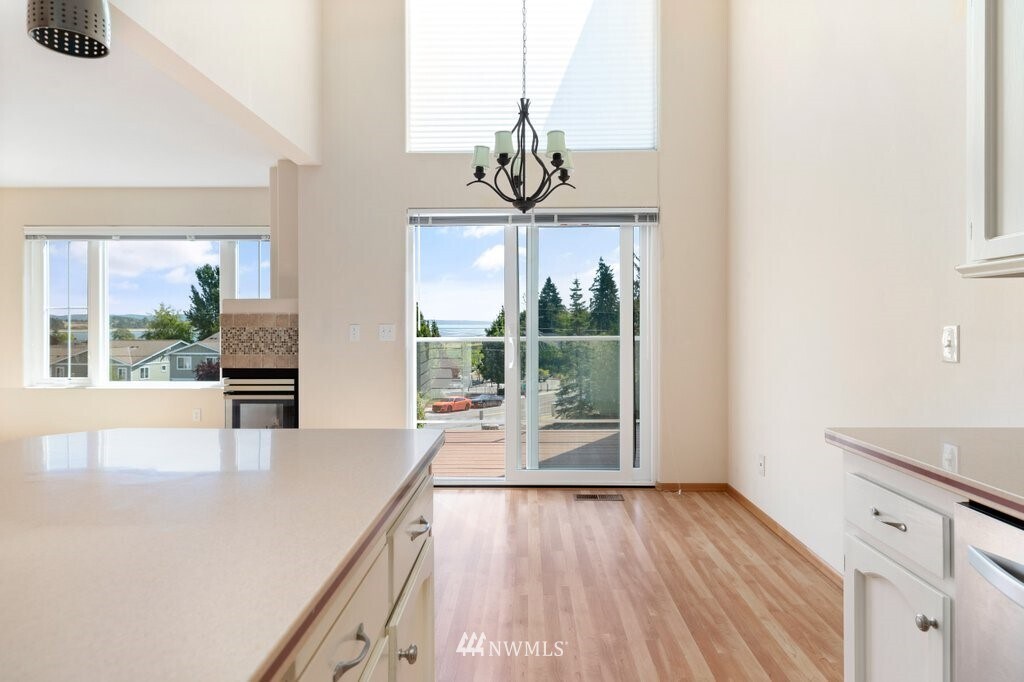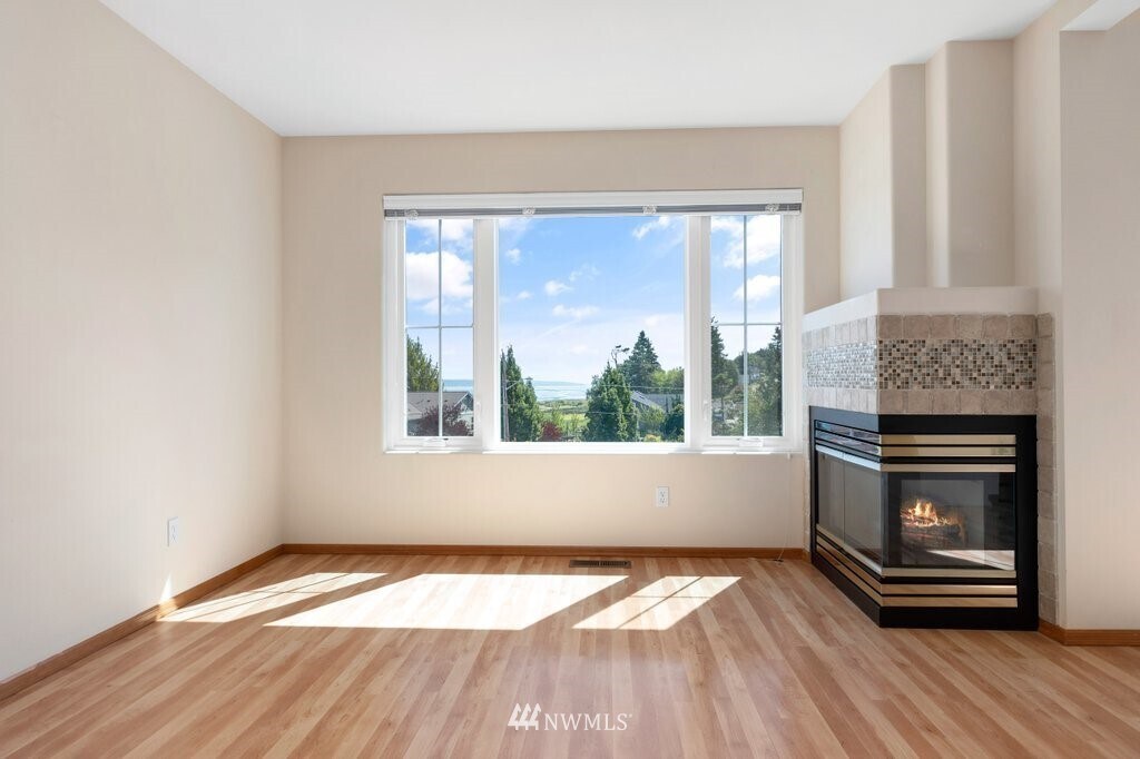 Available March 7, 2025. Call or text now to take advantage of our military move-in special!Time to enjoy what Island life has to offer living in a condo with breathtaking views of Oak Harbor Bay and Mountains. Minutes from nature trails, Windjammer Park, and Marina. This condo features Corian counter tops in kitchen and granite in bathrooms. One bedroom on main level & half bath for guests with a extra spacious primary bedroom featuring walk-in closet and a picture-worthy view. You'll love the open floor plan with vaulted ceilings and large picture windows that bring in the natural light. Snuggle up next to the gas fireplace in the living room for a late night movie. The Patio deck off the dining area offers fresh air and a great view of the bay. A laundry room is conveniently located on upper floor with a brand new washer and dryer! Two car garage and storage room on lower level. New paint throughout; this home is move-in ready!