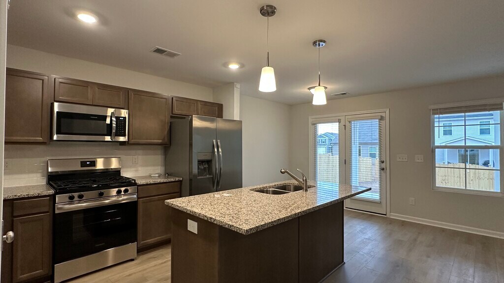 This brand-new, never-lived-in home located in the desirable Pinecrest Subdivision of West Columbia. Nestled in a well-lit, family-friendly neighborhood, this home offers a warm and inviting atmosphere that's perfect for evening strolls and enjoying the peaceful surroundings. The community provides a safe and welcoming environment for families, with beautifully maintained streets and plenty of lighting throughout. This spacious two-story home features 3 bedrooms, 2.5 bathrooms, and a 2-car garage, offering both comfort and functionality. With quick and easy access to Highways 20 and 26, you're just a short 7-minute drive from key destinations such as Lexington Medical Center, Walmart, Aldi, and Target... You'll also enjoy the convenience of having a wide variety of restaurants nearby, as well as shopping options like Columbiana Centre, Costco, and Sam's Club all within a 15-minute drive. located less than 7 miles away form University of Columbia South Carolina. Inside, the home boasts an open-concept layout designed for modern living. The kitchen is beautifully appointed with granite countertops, generous cabinetry, a gas stove, oven, built-in microwave, and dishwasher. It flows seamlessly into a cozy living room complete with a gas-burning fireplace, creating the perfect space for relaxing or entertaining. The dining area leads directly to the backyard porch, offering an ideal spot for outdoor gatherings or quiet evenings. Additional features include a CPI security system for your peace of mind and built-in Wi-Fi for added convenience. Large windows on the right side of the home bring in natural light and offer lovely views of the surrounding nature, enhancing the home's tranquil ambiance. This thoughtfully designed home combines style, comfort, and practicality making it the ideal place to call your own. Don't miss out on the opportunity to make this beautiful new home yours!