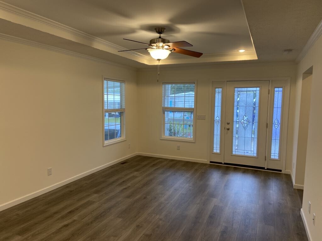 Tentatively available 3/1/2026. This home is currently occupied and can not be shown. THE HOME IS FOR SALE OR RENT. If purchased, NO LOT RENT UNTIL JUNE 1ST! IF RENTED, NO RENT UNTIL MAY1ST! WELCOME TO VILLAGE GREEN A 55+ AGE-QUALIFIED ACTIVE AND VIBRANT COMMUNITY where you can find yourself in your dream home. Discover the beautiful Ashville model, a 2023 3 bed, 2 bath home for sale or rent featuring 1342.00 sq ft of beautifully designed living space. A remarkable energy-certified home that boasts a smart thermostat and an upgraded LED lighting package provides increased efficiency. With a split floor plan, this stunning residence features two cozy bedrooms at the front of the house, while the luxurious master suite is privately tucked away at the rear. The well-appointed kitchen showcases a generously-sized center island, complete with cabinetry and seating, as well as a stainless steel farmhouse sink with a convenient pull down gooseneck faucet that marries functionality with beauty. An ample dining area adjacent to the kitchen is perfect for entertaining guests. Elegant crown molding, trey ceilings, and ceiling fans add a touch of sophistication to the home's design. A roomy covered front porch and an in-unit washer and dryer hook-ups further enhance the comfort and convenience of this beautiful abode. Don't miss your chance to experience this exceptional home firsthand - schedule your VIP tour today! This home is located in Village Green, conveniently situated near shopping, dining and highway I-95, you'll have everything you need just minutes away. On-site management, laundry facilities RV storage. Always pet friendly. Call today and find out more. Flexible financing options are available!