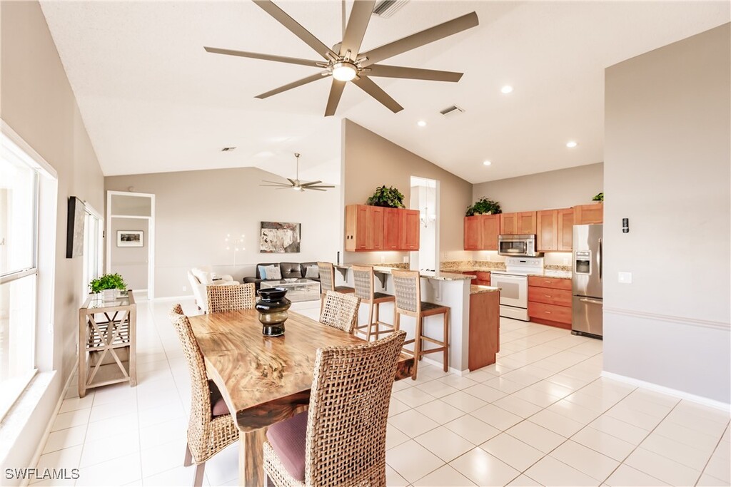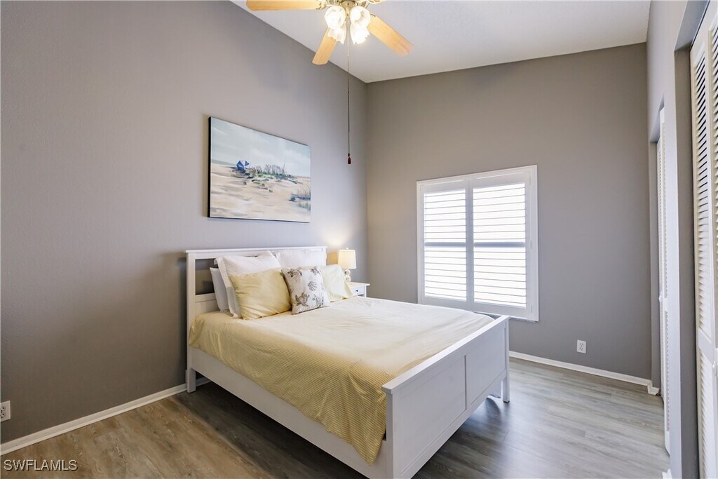 This beautiful single-family home with upgraded 3 bedroom/2 bath is in the most ideal area of town. Just a few minutes to Vanderbilt Beach,Mercato,and Waterside Shops. Gorgeous walking paths with a view of Naples' largest natural freshwater lake. It has high vaulted ceilings and two sets of sliders that open to a large screen patio with lake views. The home is in Emerald Lakes and has amenities like a pool,lake,pier,outdoor grill area,tennis,bocce,pickleball courts,fitness center,fishing dock,and Clubhouse. Dog friendly. Enjoy the fantastic sunsets over the water every night and the Best of Florida Living!