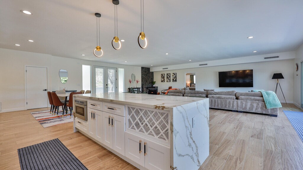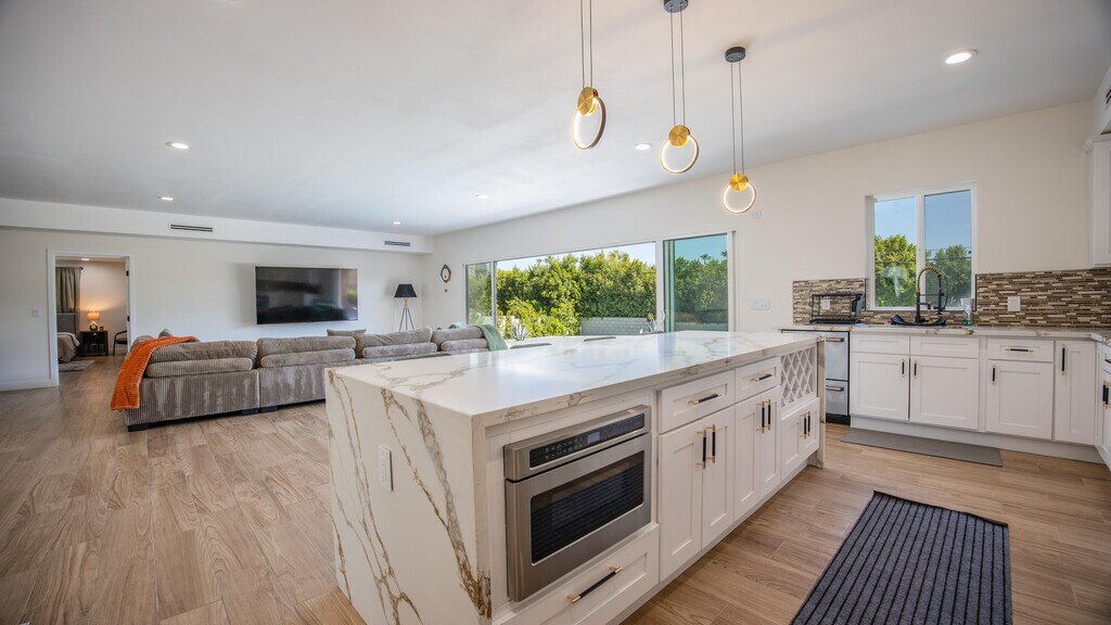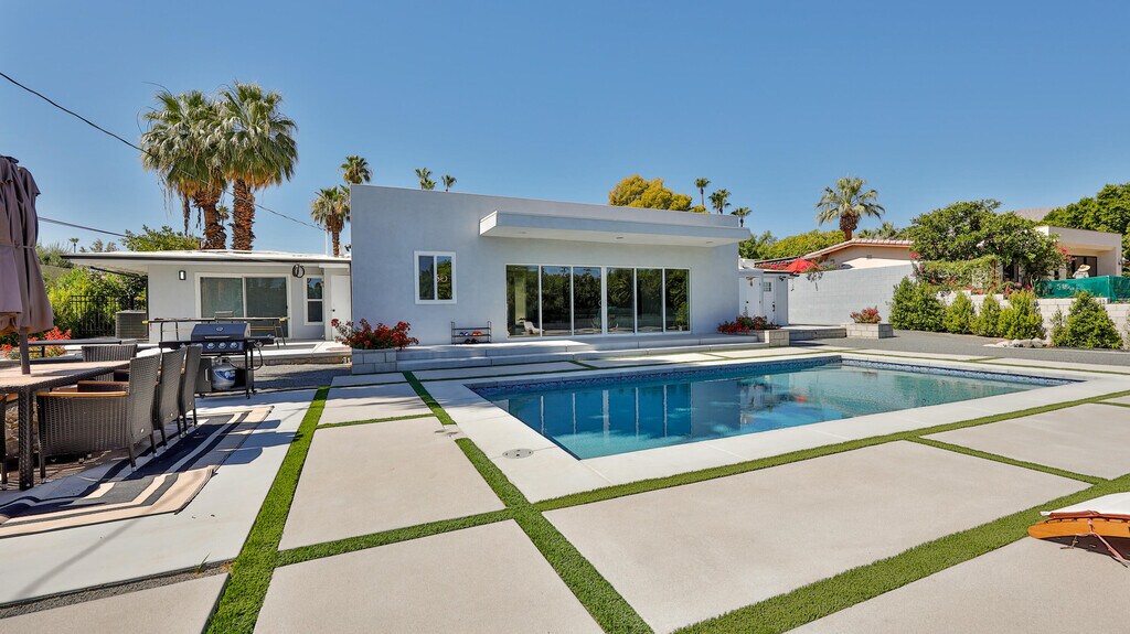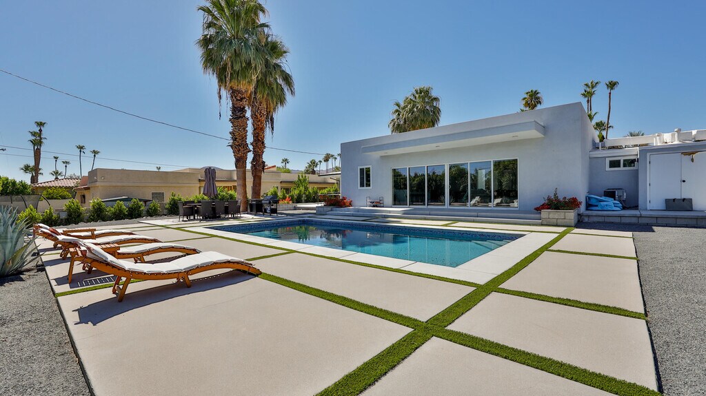 Welcome to your South Palm Desert dream escape. This stunning,fully upgraded estate is the epitome of luxury living and resort-style relaxation located right behind El Paseo in desired South Palm Desert. Designed with an open,airy floor plan and cozy fireplace,the home is perfect for both intimate evenings and entertaining in style. The brand-new chef's kitchen is a culinary masterpiece,featuring top-of-the-line modern appliances,an integrated refrigerator,and a built-in coffee stationtailor-made for the gourmet enthusiast. Each bedroom is a private suite,complete with its own elegant bathroom for ultimate comfort and privacy. Slide open the collapsible glass doors to reveal an entertainer's backyard oasis: a sparkling swimmer's pool,soothing spa,custom putting green,and ping pong lounge area,all framed by breathtaking mountain views. Whether you're hosting guests or creating cherished family memories,this home offers it all,including an attached,self-contained ADU,with its' own separate entrance for added privacy or rental potential. Just minutes from the world-famous El Paseo shopping and dining,and a short distance to premier attractions like the Indian Wells Tennis Garden for the BNP Open,Empire Polo Grounds,Coachella & Stagecoach Music Festivals,along with PGA golf events,and endless championship golf courses. Available for sale,for long-term or seasonal lease,call today to schedule your private showing.