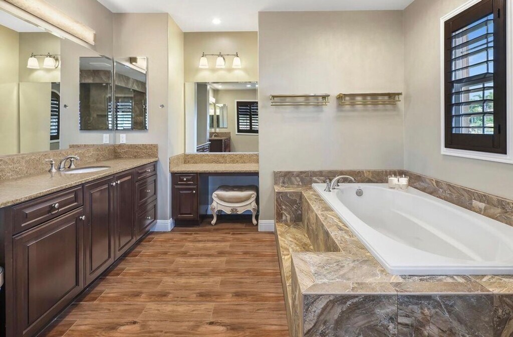 Welcome to a rare rental opportunity in one of Moorpark’s most prestigious communities. This expansive Tuscan model blends designer finishes, grand architecture, and resort-level outdoor living. The moment you enter, you’re met with dramatic two-story volume ceilings and a dual sweeping staircase that creates a true wow-factor. The chef’s kitchen flows naturally into the spacious family room and features a generous quartz island, high-end appliances, double ovens, two dishwashers, 6-burner cooktop, built-in refrigerator, and a walk-in pantry. Oversized multi-slide glass doors open the entire back of the home to the yard, making indoor/outdoor entertaining effortless. The main level includes a versatile bonus room, a powder room, and a private bedroom with its own en-suite bathroom—ideal for guests, in-laws, or live-in support. Upstairs, the primary suite feels like a private getaway, offering a cozy sitting area, fireplace, balcony with sweeping mountain views, and two custom-built walk-in closets. Three additional bedrooms are located upstairs, each with its own bathroom; one also includes a balcony and an attached gym/flex room. The backyard delivers full resort vibes: a saltwater pool with Baja shelf, waterfall spa, covered patio, pergola, built-in BBQ, and beautifully designed landscaping with citrus trees lining the property. The mountain views are stunning and the yard feels incredibly private. Additional features include a large laundry room, 4-car garage with specialty flooring, custom lighting, and numerous thoughtful upgrades throughout. Gardener and pool service are included. Homes like this rarely come up for lease—this one truly checks every box! Our office participates in the Pet Screening Service, ALL APPLICANTS MUST COMPLETE A PROFILE EVEN IF THERE ARE NO PETS IN THE HOME. To complete your pet profile please follow the below link Utopia Management DRE#01197438 Please reach out to schedule showings or with any questions! Khyrsten Khyrsten@