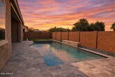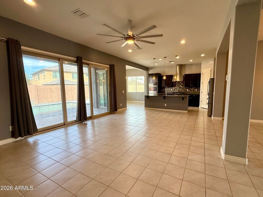single-level lease opportunity in Adora Trails. The split floor plan offers 4 bedrooms,3 full baths,a private den + a spacious open living area ideal for everyday comfort + entertaining. The kitchen flows seamlessly into the main gathering space,creating a functional + connected layout.The oversized primary suite includes a separate tub,walk-in shower + generous walk-in closet. Enjoy a resort style backyard with a sparkling pool,waterfall feature,travertine decking + low maintenance artificial turf. A 3 car garage provides ample storage + parking. Community amenities include 12+ miles of trails,a catch/release fishing lake,clubhouse w/ fitness center,basketball court,resort pool,splash pad + parks. A rare lease opportunity in one of Gilberts most desirable neighborhoods.