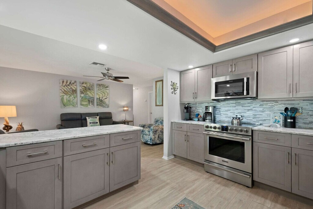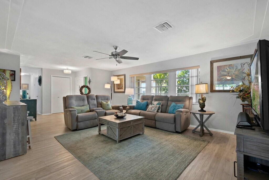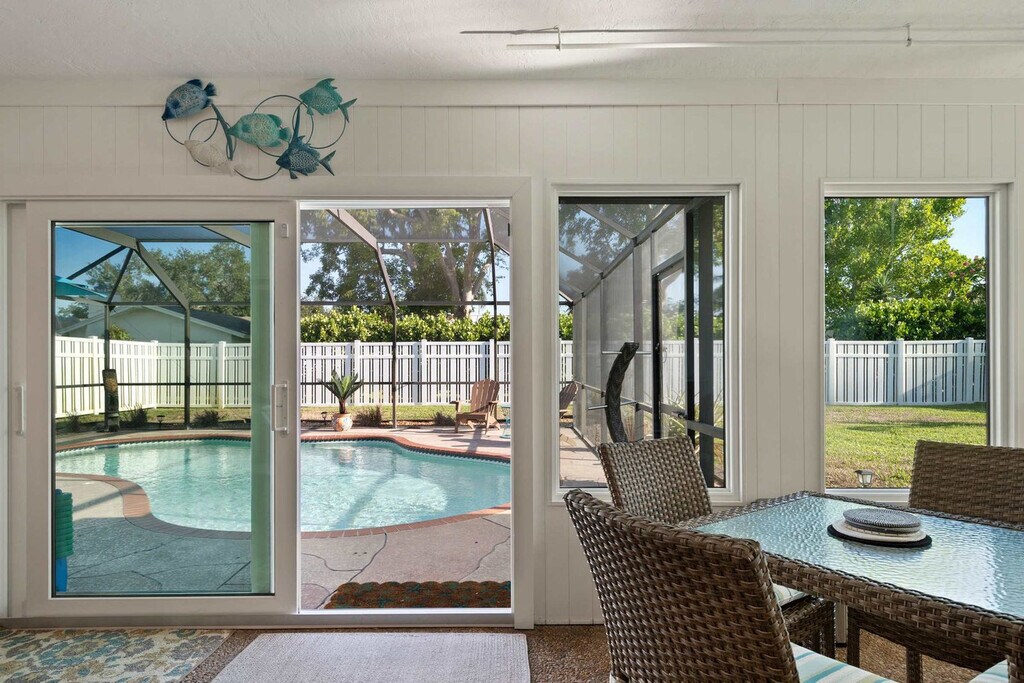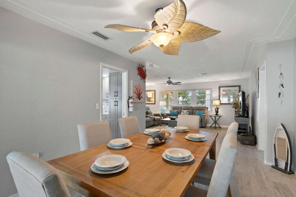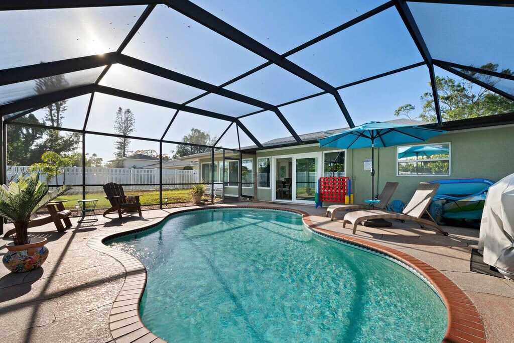 Gather your loved ones and create unforgettable memories at this stunning Bradenton home. Nestled in a friendly neighborhood just minutes from Palma Sola Bay and Anna Maria Island, this home is the perfect retreat for those seeking sunshine, adventure, and relaxation. Each bedroom is designed for maximum comfort with soft linens, tasteful decorations, and central AC. The primary bedroom features a king-size bed with a brand-new mattress, while the second bedroom offers another king-size bed and the third bedroom has a queen-size bed. The living room provides cozy couch seating and a large TV for entertainment. Indulge in spa-like comfort with clean and modern bathrooms stocked with essentials. The primary en-suite includes a walk-in shower, and the second bathroom features a shower/tub combo. Prepare home-cooked meals in the fully stocked kitchen featuring stainless steel appliances, granite countertops, a dishwasher, microwave, stove, and fridge. Enjoy your morning coffee with a Keurig or traditional coffee maker in the dining area with seating for six. Pets are welcome at this vacation rental with a fee of $200 per pet per stay. Parking is available for 3 vehicles. Enjoy easy access to some of Florida’s most beloved destinations, including Palma Sola Botanical Park and Robinson Preserve, both just 2 miles away. Van Wezel Performing Arts Hall is 14 miles away, and Manatee Village Historical Park is 11 miles away. The Sarasota-Bradenton International Airport (SRQ) is conveniently located 10 miles from the home. Check-in is at 4:00 PM and check-out is at 10:00 AM. Smoking is not allowed anywhere on the premises. Quiet hours are from 10:00 PM to 8:00 AM as part of the Good Neighbor Policy. Guest entry is facilitated by a digital E-lock with a unique code per guest. Security cameras are located at the front door and west side of the house. This home is located in a noise-sensitive area and participates in the Good Neighbor Protection Program, with smart home technology monitoring excessive noise levels to ensure a peaceful stay for all guests. Stay connected with high-speed internet and Wi-Fi. Entertainment options include a Bluetooth speaker and sound dock, board games for family fun, Netflix streaming, and cable TV. The home also offers a private washer/dryer and clothes steamer. [SI]