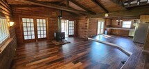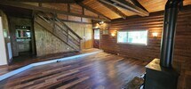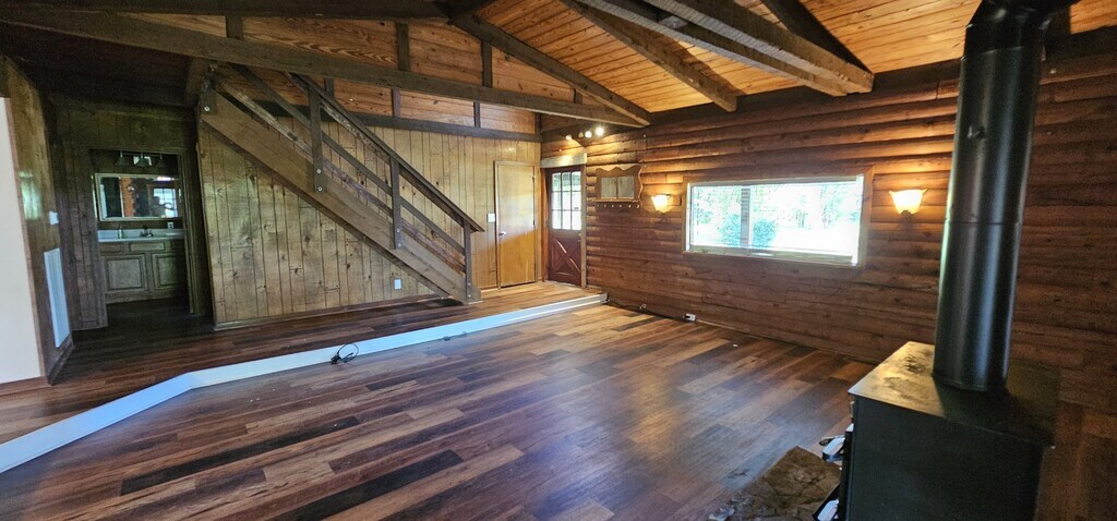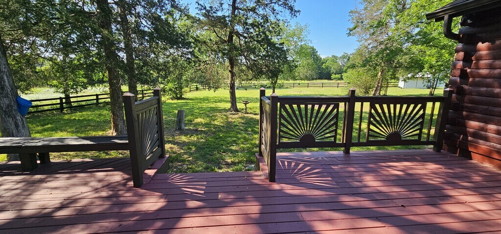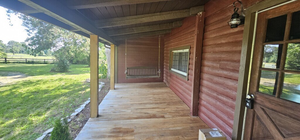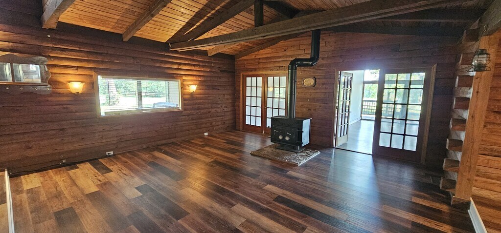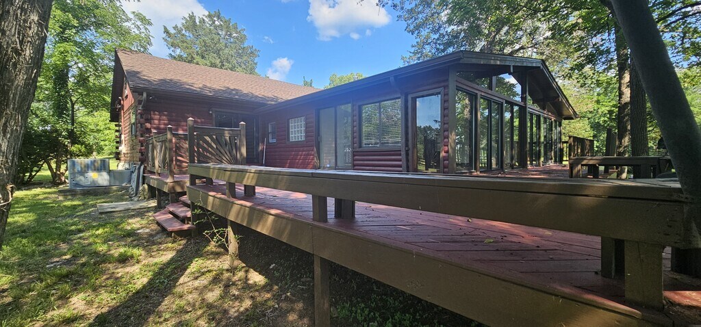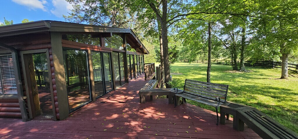 8 Acres Mini Farm Log Home – 3 Bed / 3 Bath Log Home Welcome to your private country retreat! This rustic log home features 3 bedrooms and 3 full bathrooms, an open-concept kitchen and living area, and a spacious sunroom perfect for year-round enjoyment. Step outside to a large back deck ideal for entertaining, or relax on the classic rocking chair front porch. The property includes a 3 stal horse barn and plenty of open space—perfect for animals, gardening, or hobby farming. Surrounded by nature and set on 8 peaceful acres, this mini farm offers the ideal blend of rustic charm and modern convenience. Don't miss this rare opportunity to enjoy quiet country living just minutes from town! 8 acres of land Horse barn 3 bedrooms 3 baths Wood burning fireplace Log cabin Country setting