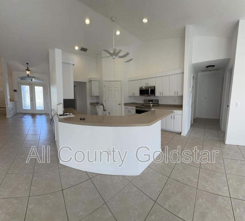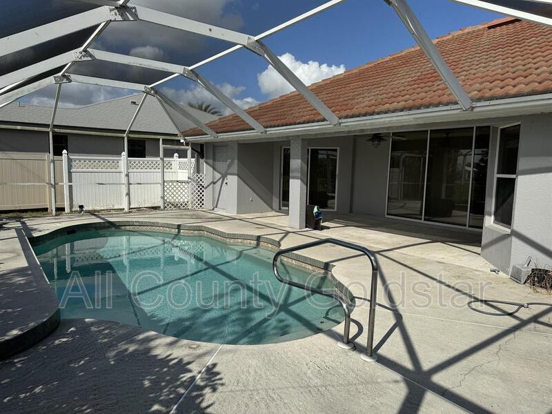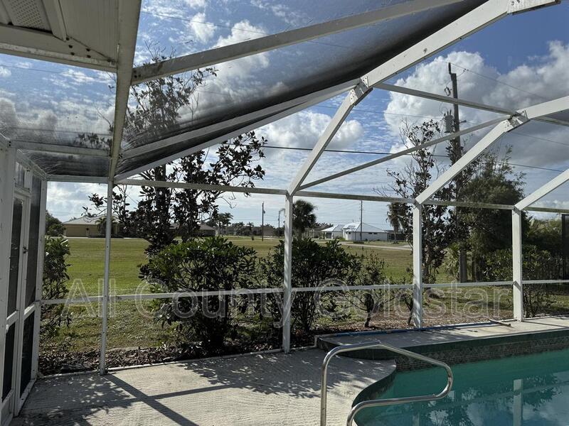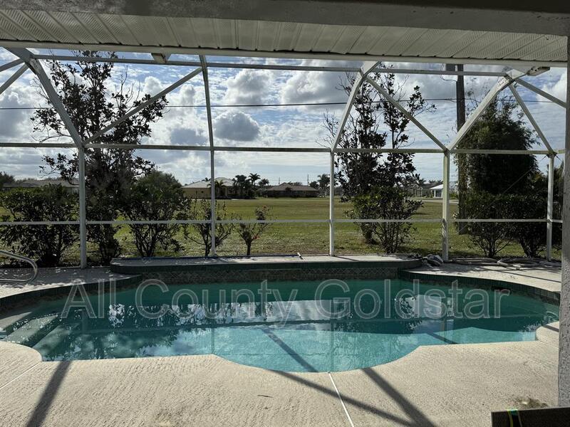 Located in the sought-after Burnt Store Meadows community, this 3-bedroom, 2-bathroom home is a perfect retreat. The open, split floor plan features high ceilings, elegant tile floors, and sliding doors that lead to a screened lanai with a heated saltwater pool and waterfall. The updated kitchen boasts stainless steel appliances, Corian countertops, a breakfast bar, and ample cabinetry, with a cozy dinette overlooking the lush greenbelt. The primary suite offers pool access, dual walk-in closets, and a luxurious en-suite with a Roman shower, soaking tub, and dual vanities. Two guest bedrooms, one with a walk-in closet, share a bathroom with pool access. Surrounded by tropical landscaping, the lanai creates a private, resort-like setting. This home combines comfort, style, and a prime location. Schedule a showing and apply now at
