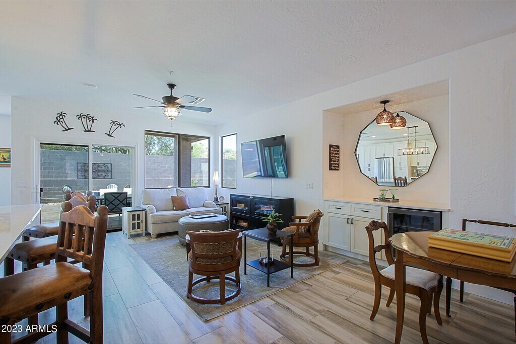 LEASED THROUGH AUGUST 2026. This stunning home has been beautifully remodeled,updated and tastefully decorated and is offered fully furnished. Gorgeous open kitchen with quartz countertops,stainless appliances and white cabinetry. Porcelain tile throughout and no carpeting. Primary bedroom with luxurious ensuite bathroom complete with walk in shower,soaking tub and dual sinks. 2 guest bedrooms share a 2nd bath with shower. Very large backyard with outdoor dining,water feature,putting green,sand trap,fire table and games! Quiet location conveniently located to shopping,restaurants and Mayo Clinic Phoenix!