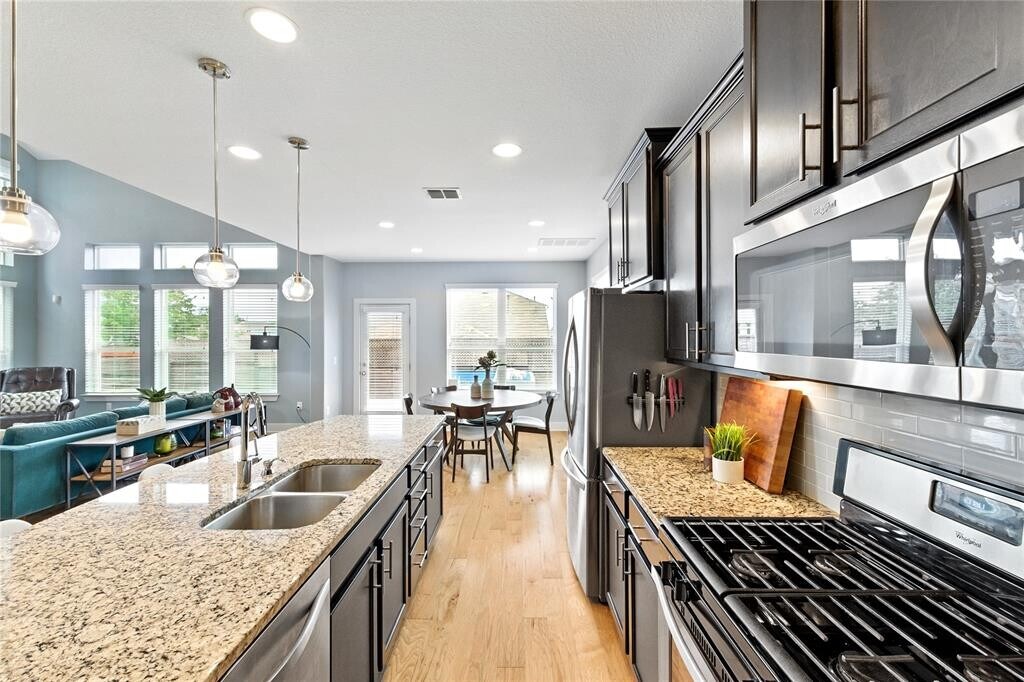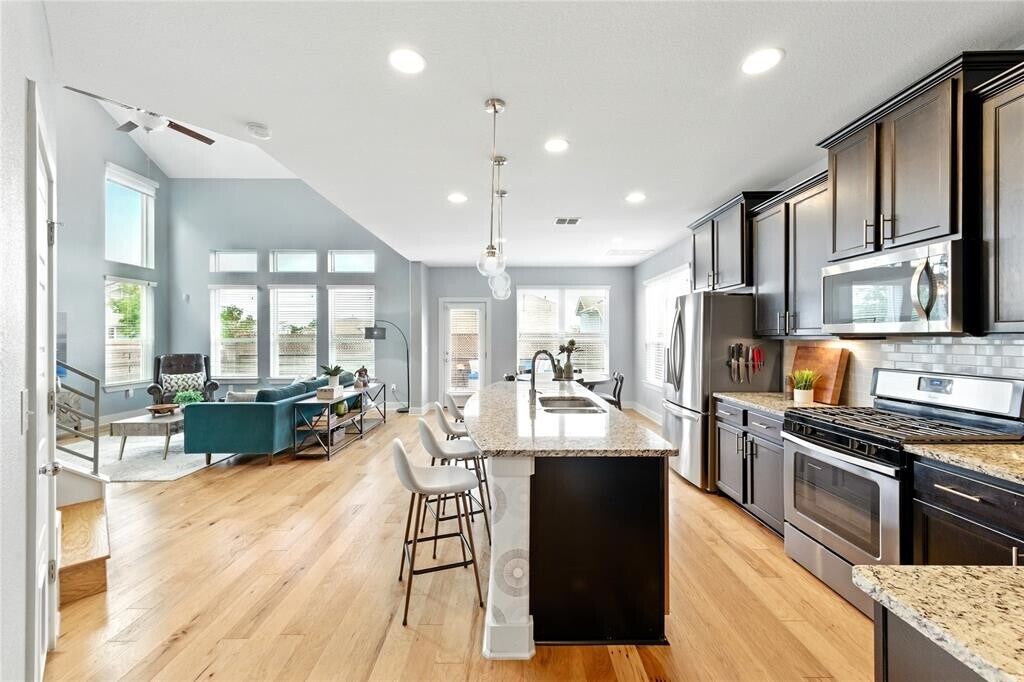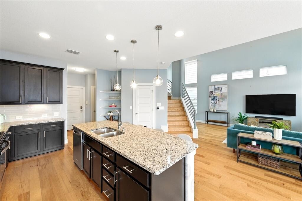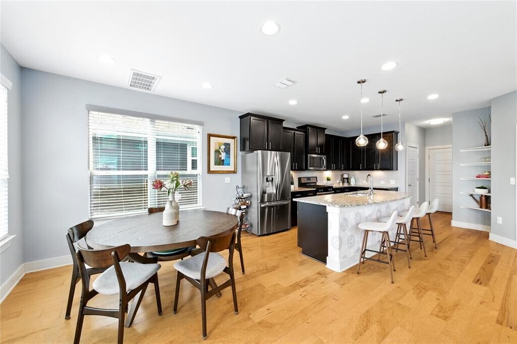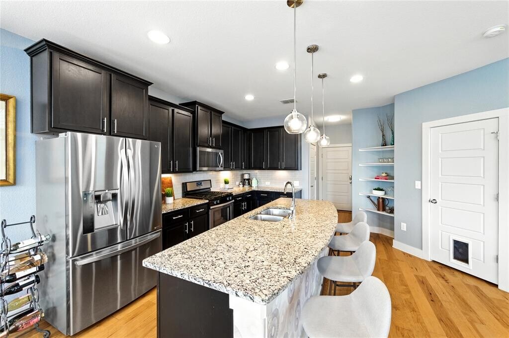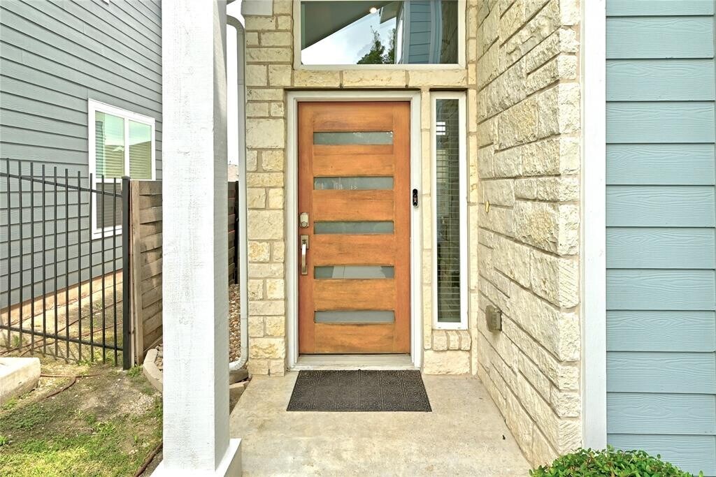 Stylish 3-bed, 2.5-bath free-standing condo in the gated Eastwood at Riverside community. Built in 2017, this 1,898 sq. ft. home offers a low-maintenance lifestyle just minutes from downtown Austin, Lady Bird Lake, and the airport. Features include high ceilings, natural light, open-concept layout, and a gourmet kitchen with stainless steel appliances, granite counters, and walk-in pantry. Upstairs boasts a spacious primary suite with walk-in closet, en-suite bath, and downtown views. Enjoy a private fenced backyard with deck. HOA covers landscaping, trash, and gate maintenance plus a private dog park. Move-in ready now with included appliances and smart features: Nest thermostat, Ring doorbell, and security cameras. Close to H-E-B Plus!, Buzz Mill Coffee, Lustre Pearl East, and The Boardwalk at Lady Bird Lake.
