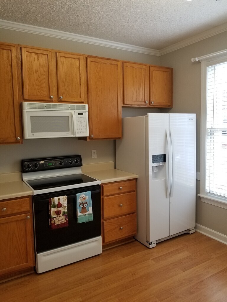 Tired of seeing rental properties that are old, outdated, dirty, dark and with Bugs?? Not here. Recently updated, painted and professionally cleaned. Backs to woods and not another townhome. Modern appliances with ice and filtered water at the Refrigerator, microwave, breakfast bar, newish carpet and more. Very quiet for relaxing and enjoying a glass of wine or dinner on the patio with privacy. All closets have high end, deluxe wood closet organizers with lighting. Baths have Granite tops and high end lighting everywhere. Master has a walkin closet. Ceiling fans with wall controls in all bedrooms. Lots of storage inside and outside in a lockable closet. A cul de sac location with no through traffic so quiet and plenty of parking right in front of your new home. So close to 440, 540, Crab Tree Mall and Lowe's foods, great restaurants across and up the street, Panera Bread, banking, and so much more just 5 minutes away. One of the best school zip codes in Raleigh. Experienced, local and professional property management. You will not be disappointed with this home. Contact me for a video link: . Small dogs considered on a case by case basis with small additional fees and conditions.