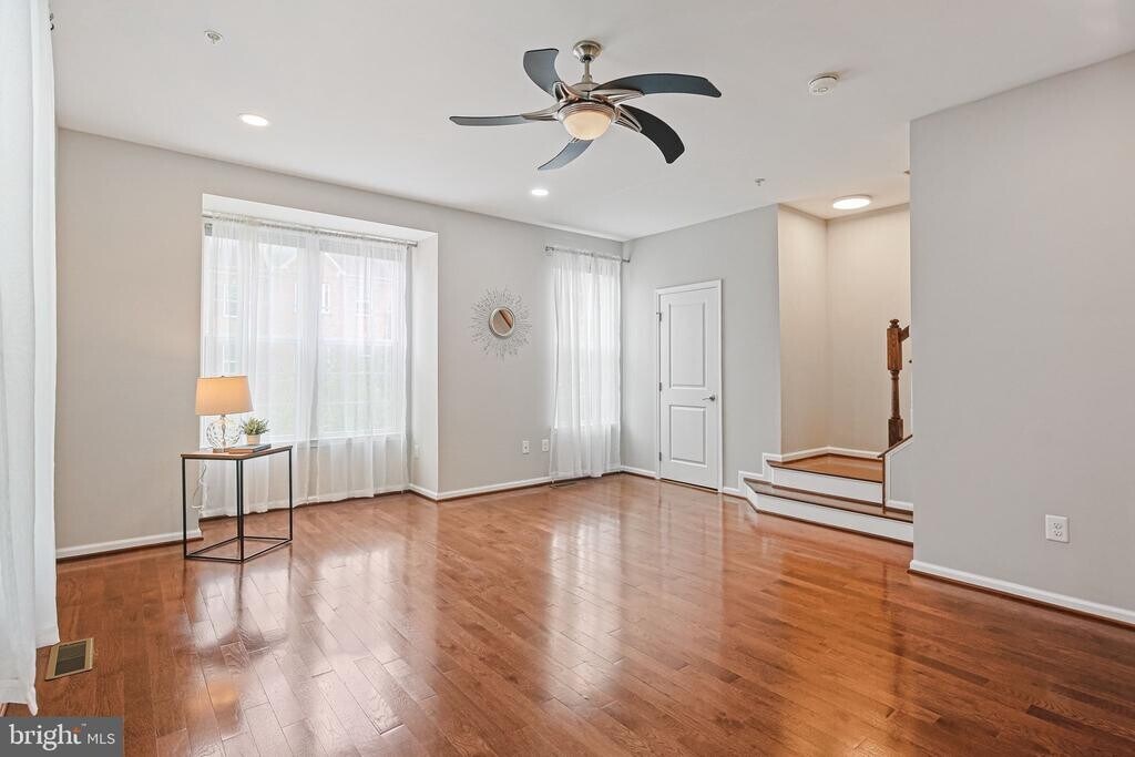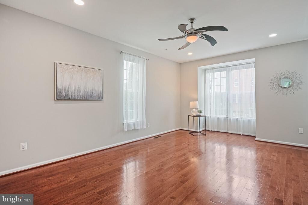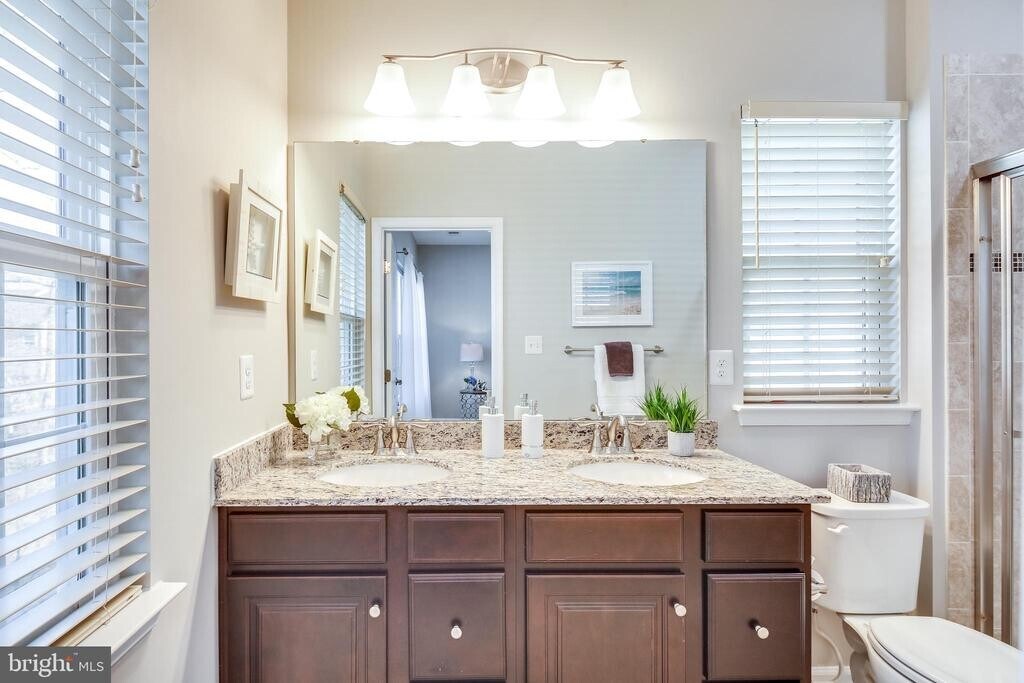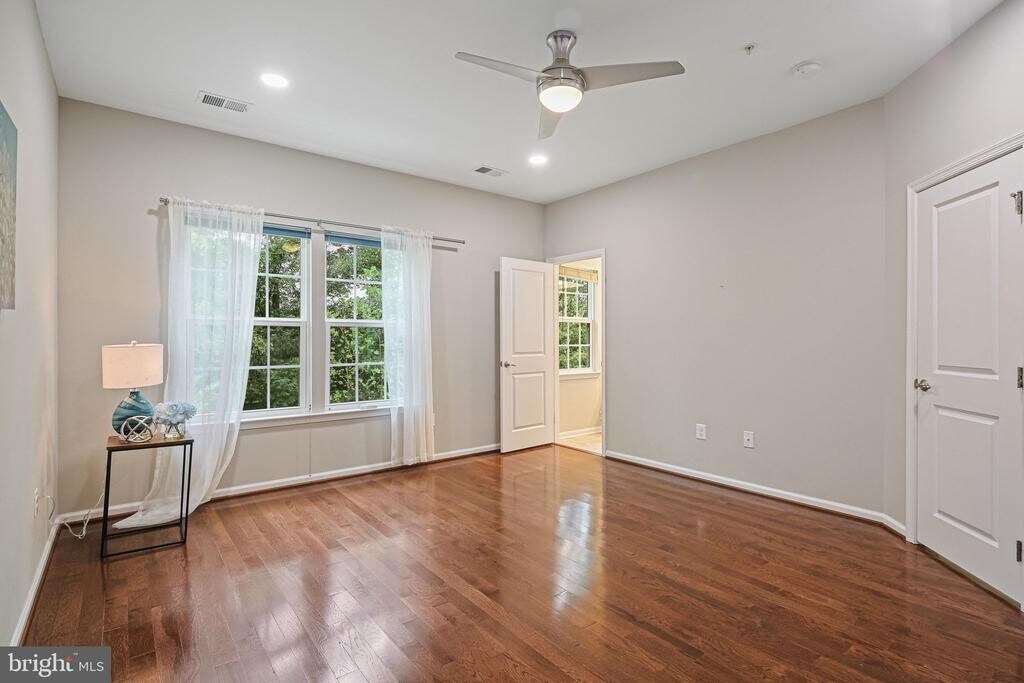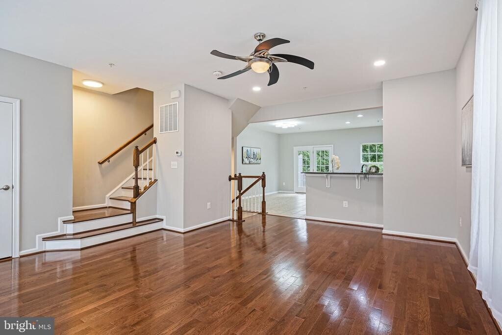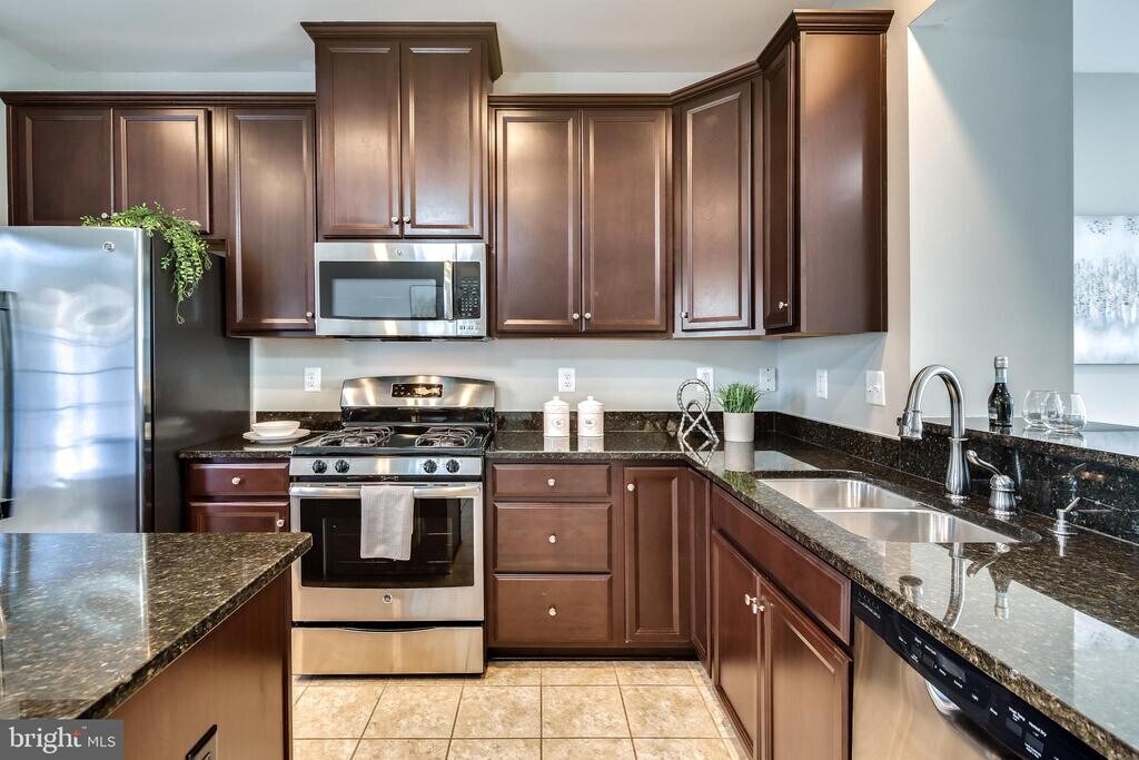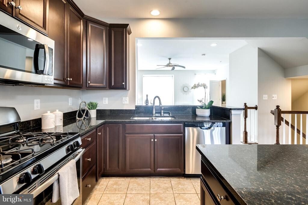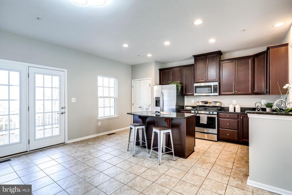 Beautifully updated end of group garage townhome ready for you to enjoy! One of the largest models in the community, spacious, bright, sun drenched with extra windows and excellent floor plans. Super-sized kitchen overlooking trees, ideal for daily cooking and holiday entertaining with French patio doors to a maintenance free deck, upgraded cabinetry, granite counters, gas cooking and built-in micro-wave. Plenty of seating for both center island and breakfast bar area adjoining a huge family room. 9' ceilings in main and upper levels. Stunning owner's bed and luxury bath with private rear views of open space and trees. New lighting fixtures including led ceiling lights and recessed lights, fresh paint, new window treatments throughout. Ceiling fans in all bedrooms and family room. Level entry for the first floor, EV Charging and shelving in the garage, and view of the trees from the oversized recreation room. Just a few steps to the community park. 5 minutes to Costco, 175/95