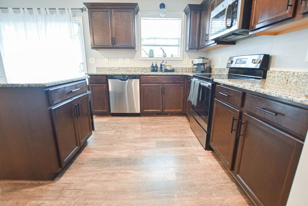 Like new four bedroom, two and half bath home featuring laminate flooring throughout the main living area, spacious living room with shiplap fireplace, eat in kitchen with stainless steel appliances and island, plus additional separate dining! Primary suite with full bath featuring double vanity, soaking tub, and separate shower! All guest rooms are generously sized! Great outdoor space with covered deck, patio, and fenced yard! Pet Rent Scale - Dogs: $25.00 per month - Cats: $35.00 per month