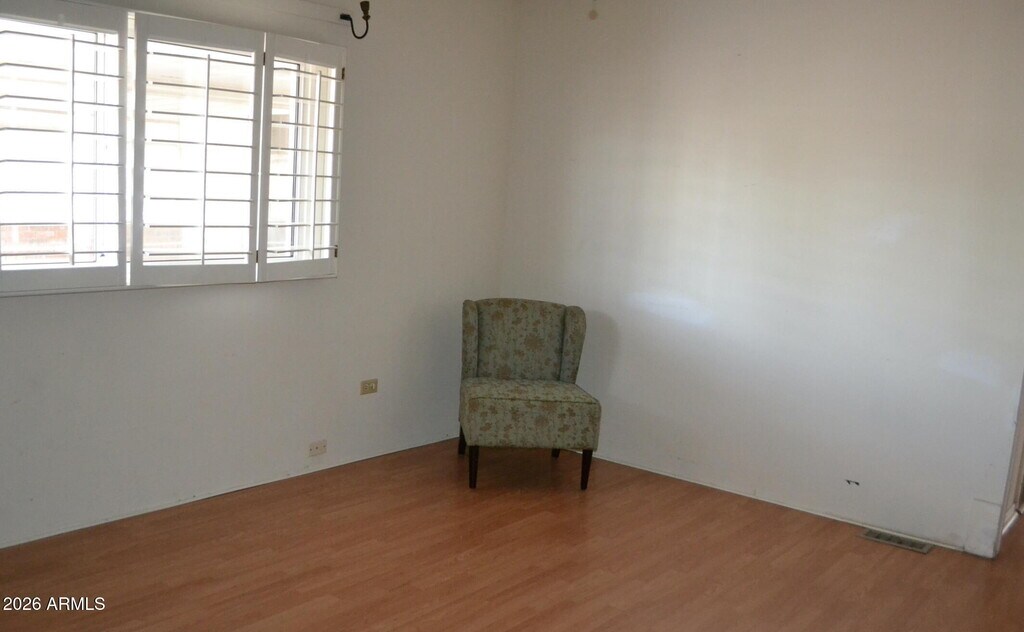 This is a 55+ community in Arizona Skies. This two bedroom one bath corner lot home has citrus trees and brick touches. Enclosed Arizona room. Built in hutch in the kitchen.