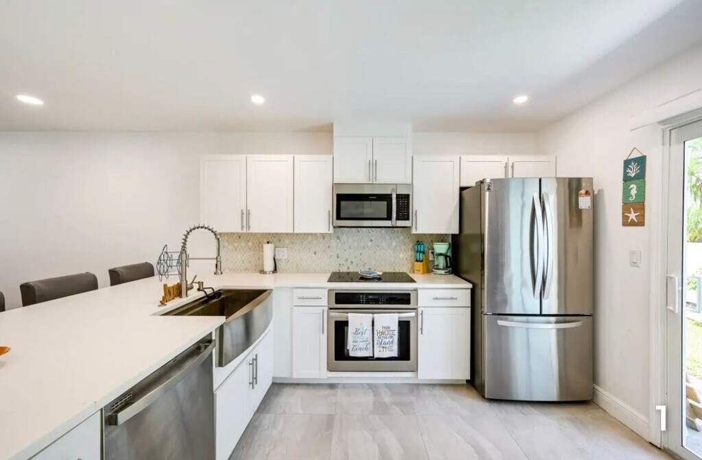 Centrally located 2BR/2.5BA townhome in Marco Island featuring a bright white kitchen with new stainless-steel appliances, quartz countertops with waterfall edge, bar seating, modern backsplash, and recessed lighting. Sliders open to a private patio with lanai enclosure and exterior storage. First floor includes half bath with LED-lit frameless mirror. Second level offers a spacious primary suite with double windows, closet, and full bath. Guest bedroom includes double windows, closet, and adjacent full bath. In-unit washer/dryer. Move-in ready with modern updates throughout. Property may be offered furnished. Security Deposit amount determined by the owner. Elevate your living experience with our optional Resident Benefits Package ($45/month). Enjoy peace of mind and extra perks designed to make renting easier and more rewarding: - $100,000 in personal liability protection - $10,000 in personal belongings protection - Credit Booster for on-time payments - build your credit just by paying rent - Accidental damage & lockout reimbursement credits - Plus more exclusive resident perks! Property is syndicated by Nomad as a courtesy to owner. Owner will conduct all correspondence and showings. BEWARE OF SCAMS - Nomad will never ask you to pay any amount prior to applying and all payments are processed through our secure online tenant portal direct to Nomad.