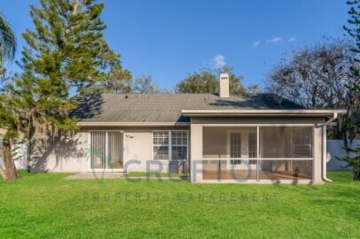 This 3 bedroom 2 bathroom house is very spacious with a split floor plan. Tile, wood and luxury vinyl floors throughout, no carpet. Fireplace in the large open Family room. Brand new kitchen and updated bathrooms. Freshly painted inside. Screened in back porch overlooking fenced backyard. Inside laundry room with washer and dryer included. The master bathroom has a tub and separate shower and large walk in closet. 2 car garage. Available now.
