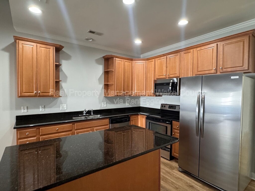 Freshly updated and move-in ready, this spacious townhome offers approximately 1,846 square feet with 3 bedrooms and 2.5 bathrooms. The interior has been completely refreshed with new paint, updated flooring, and new carpet, creating a clean and modern feel throughout.The kitchen features granite countertops and a full range of appliances, and the living area includes a gas fireplace that adds warmth and character to the space. Central air conditioning and gas heating provide year-round comfort. The home also includes a one-car garage and thoughtful storage throughout. Front lawn care is included, allowing for low-maintenance living, while the rear patio area offers a defined outdoor space. Located in the Mulberry Park community, this home provides convenient access to everyday services, shopping, and major roadways. A great opportunity to enjoy a well-maintained, updated rental in a desirable Raleigh location. 12/18/24 Month Lease, Security Deposit and Lease Administration fee applies. Apply or schedule a showing on our website at Also check out our security deposit free option VIA Obligo! AVOID RENTAL SCAMS: Real Property Management Wake County is a licensed Real Estate Agency that exclusively markets and represents this listing. We do not advertise on Craigslist. We would never ask you to wire money, request funds through a payment app for initial rent, deposits, or take the key after your showing to move-in. AMENITIES: * Central air/heat * Garage * Fenced Yard (Part) By submitting your information on this page you consent to being contacted by the Property Manager and RentEngine via SMS, phone, or email.