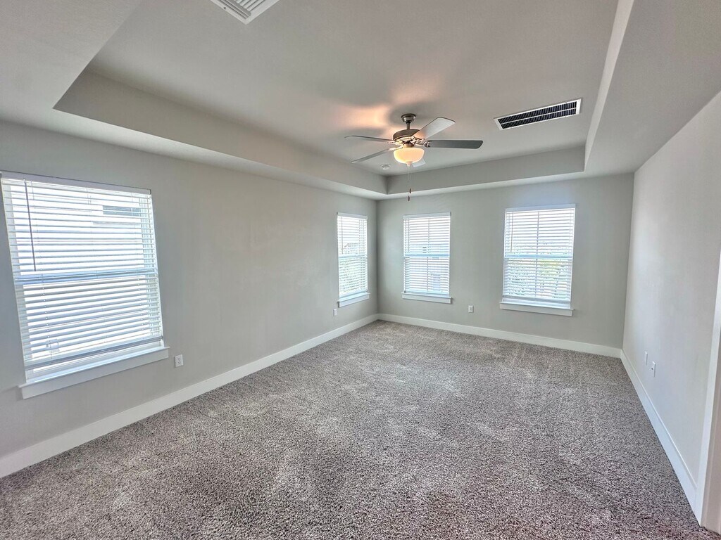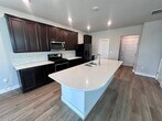 Luxurious and thoughtfully designed, this 1,737 sq. ft., 3-bedroom, 2.5-bath, two-story home in Easton Park offers the perfect blend of modern comfort and contemporary style. The open-concept main level is ideal for both everyday living and entertaining, featuring a seamless flow from the spacious living area to the dining room and into a well-appointed kitchen. Surrounding windows provide natural light throughout, enhancing the inviting atmosphere, while the smart design provides ample space for gatherings, family time, or simply relaxing at home. Beautiful chef’s kitchen, thoughtfully designed for both everyday living and entertaining. It boasts a spacious center island with bar seating, ideal for casual dining or gathering with friends and family. Outfitted with premium stainless steel appliances, ample counter space, and rich dark cabinetry, the kitchen offers both modern style and abundant functionality. A sleek tile backsplash enhances the design, while large pantry providing excellent storage and organization. Upstairs, each bedroom has been carefully designed with comfort and convenience in mind. The expansive primary suite showcases elegant recessed ceilings that add depth and architectural character, complemented by surrounding windows for exceptional natural light—creating a serene and inviting space to begin and end your day. The spa-like private en-suite bath offers a luxurious retreat, featuring a spacious walk-in shower, dual vanities with ample counter space, large walk-in closet, and refined finishes that combine comfort with elegance. Generously sized secondary bedrooms with ceiling fans and closet, versatile for guests, family, or a home office. Full bathroom upstairs with tub/shower combo. Every detail has been considered to maximize both function and livability. Fully fenced backyard, large covered back patio, two car garage, and washer/dryer included! Don’t miss the opportunity to make this exceptional residence your new home, offering a perfect blend of modern design, comfort, and elegance!