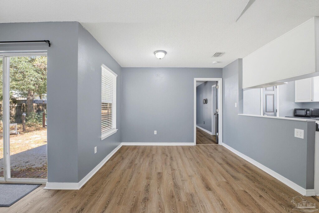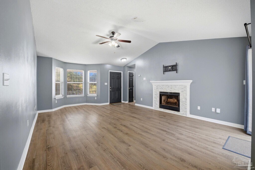 Welcome to this 3 bedroom,2 bathroom home located in Holley,Navarre. Great location for local military bases - with a straight shot North to Milton or I-10 for easy commuting to neighboring counties,or South to Fort Walton Beach,Gulf Breeze or Pensacola. Situated on a 0.26 acre lot with a fully privacy fenced in backyard. Inside,this home features a split floor plan and an open concept Main living space with vaulted ceiling,wood burning fireplace,and a charming bay window at the front of the house. The kitchen has all black and stainless steel appliances,a large tub sink,pantry,a door to the 2 car garage,and a breakfast bar that opens up to the dining area. The primary suite is just off the kitchen and features its own ensuite bathroom,as well as its own door to the backyard. The remaining 2 bedrooms and additional bathroom are on the opposite side of the home for added privacy and functionality. With no HOA!