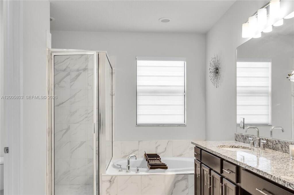 A RARE rental in Villamar at Toscana Isles! Built in 2021, this 5BR/4BA home features 2976 sqft of living space , open kitchen with 42 wood cabinetry and granite countertops, and a cooking island. Conventional floor plan includes family room, living room, and loft. Primary suite features his and hers closets, dual vanities, stand-up shower, and hot tub. Backyard patio with small yard, EV charger in 2-car garage, and gated community amenities. MLS # A12005803
